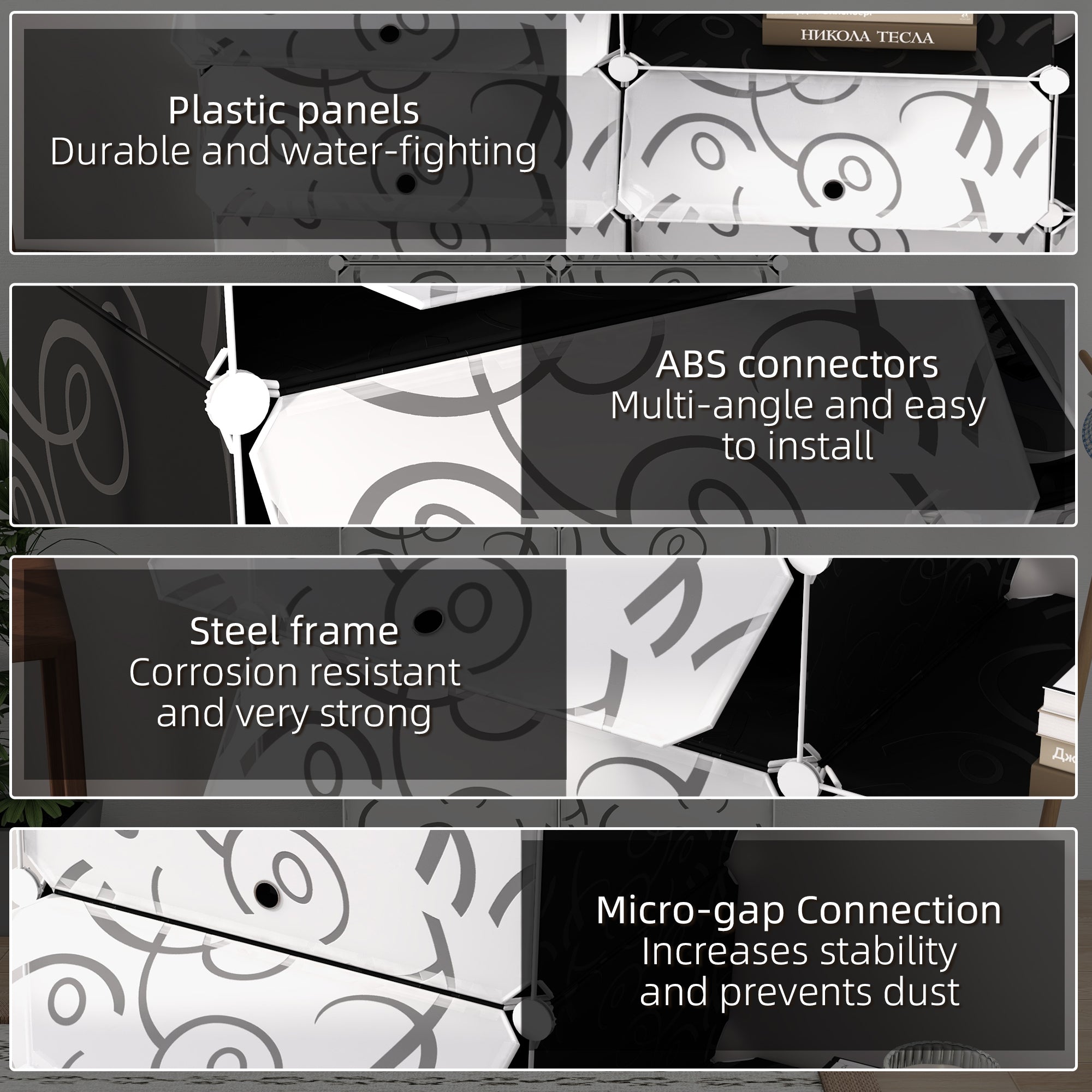 16 Cube Shoe Rack Modular Storage Cabinet 32 Pairs Plastic White and Black