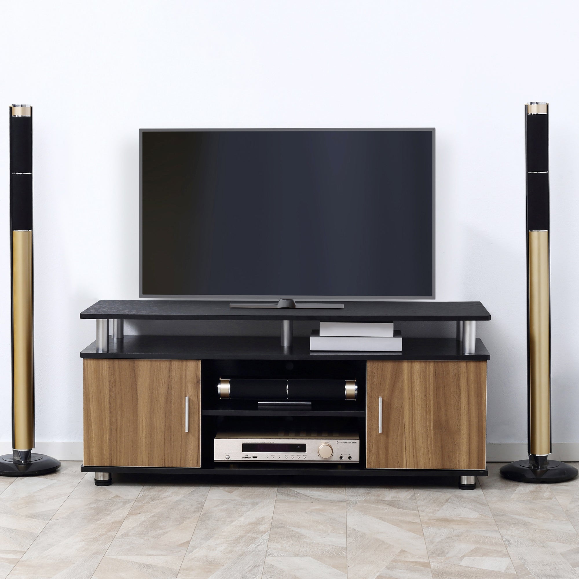 TV Cabinet Unit, Storage Shelf and Cupboards for 50'' TVs, Black and Walnut