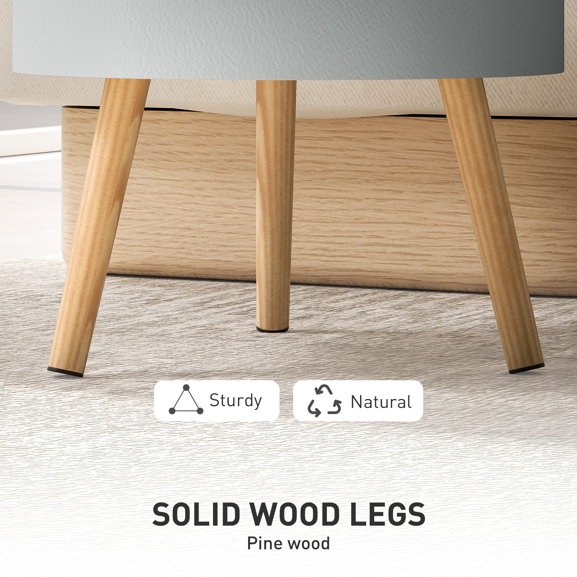 3-Tier Coffee Table, Round End Table with Hidden Storage and Detachable Tray, Grey