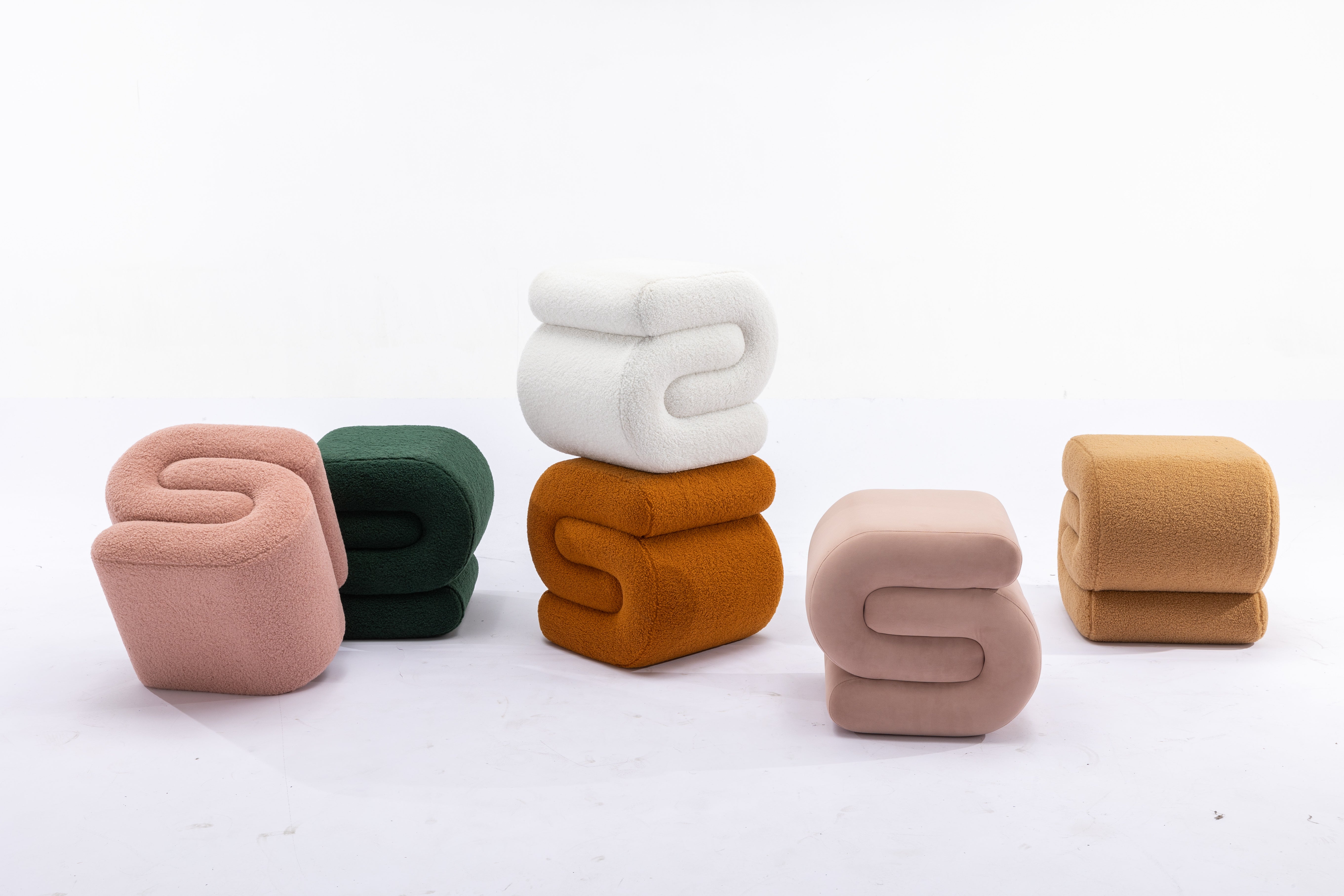 Velvet Ottoman Fabric S-shape Stool Wavy Pouf Pink