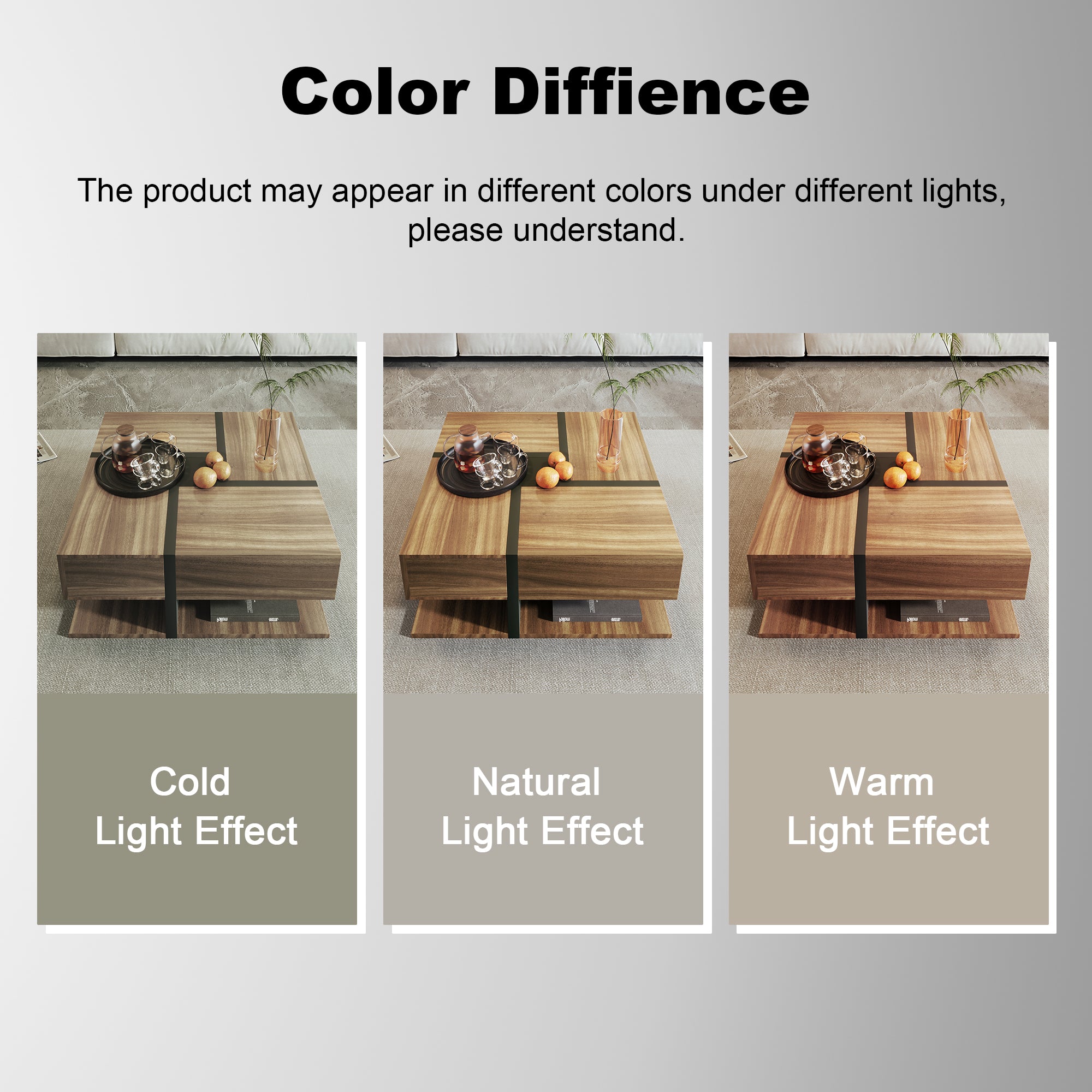 Coffee Table with 4 Drawers, Unique Color Matching, and Bottom Storage (78x78x36cm)