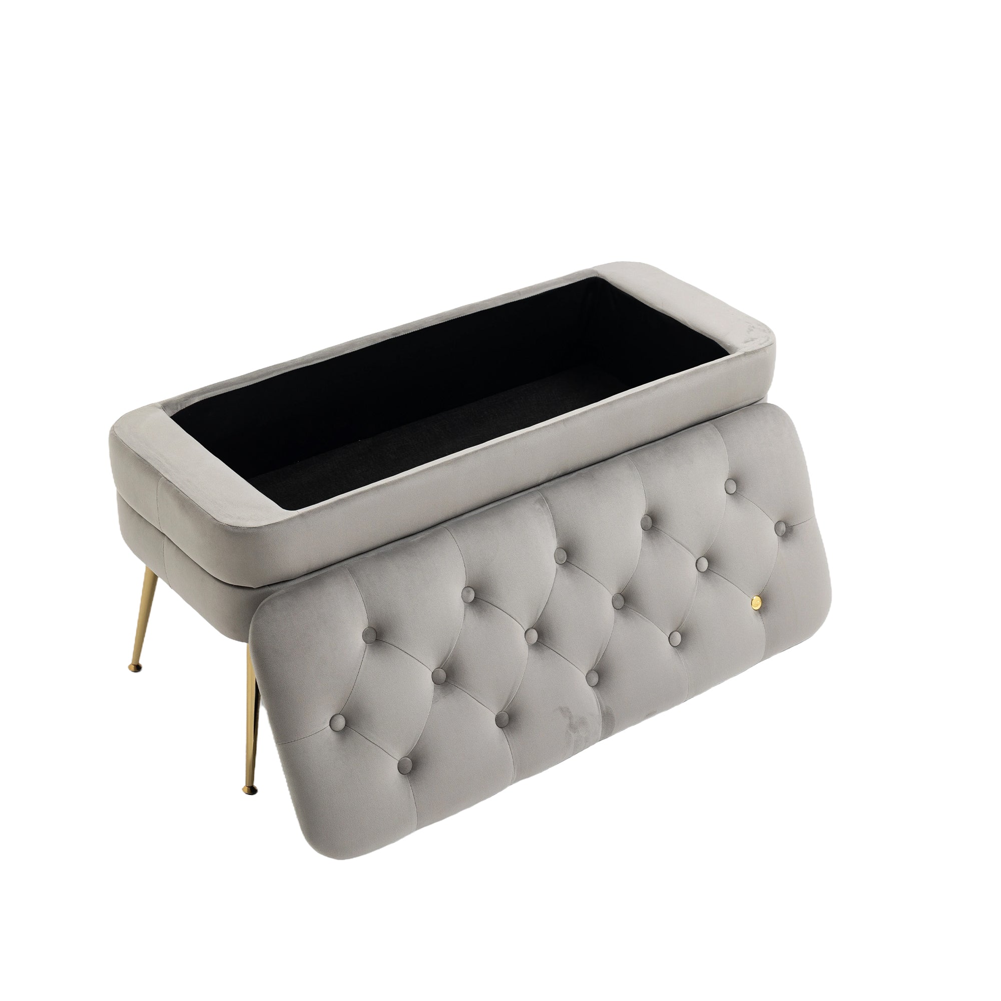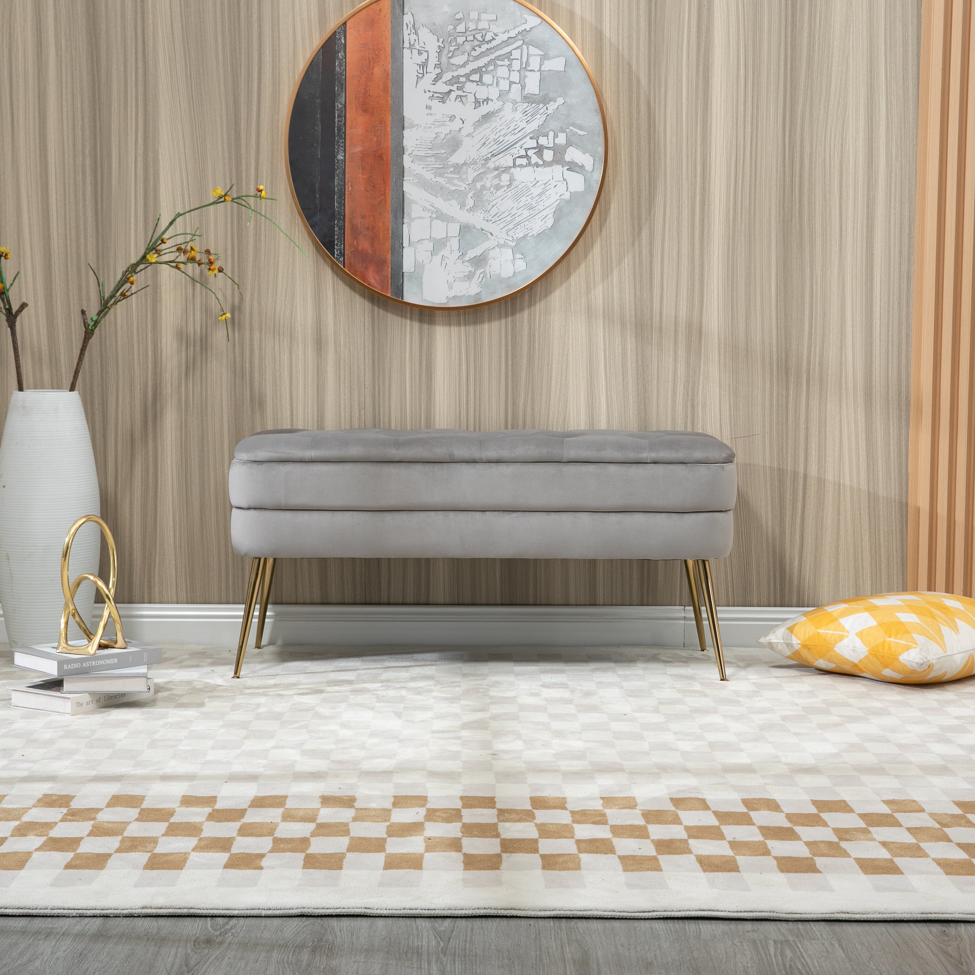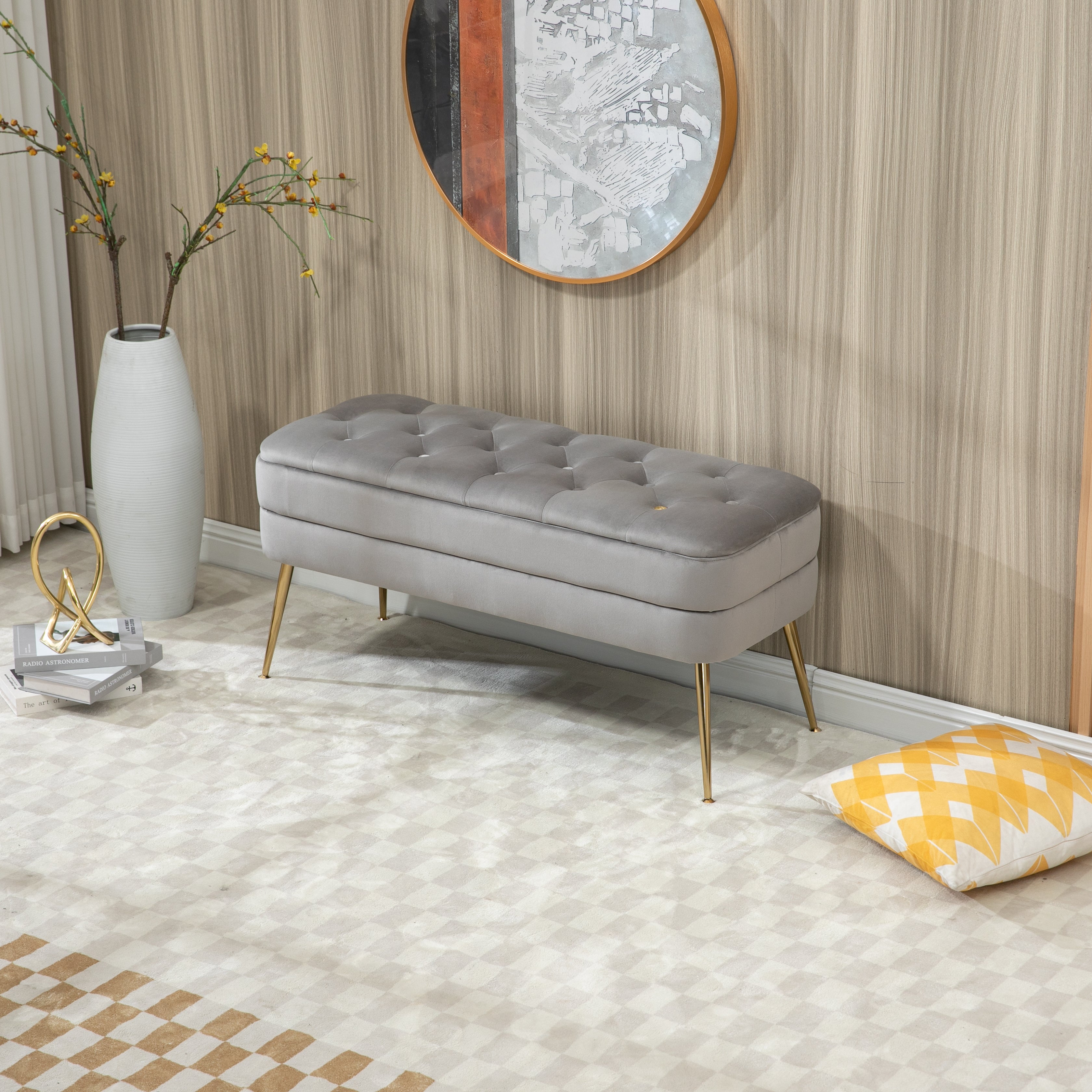 GOMYWAY Storage Ottoman Bench, Velvet Upholstered, Gray