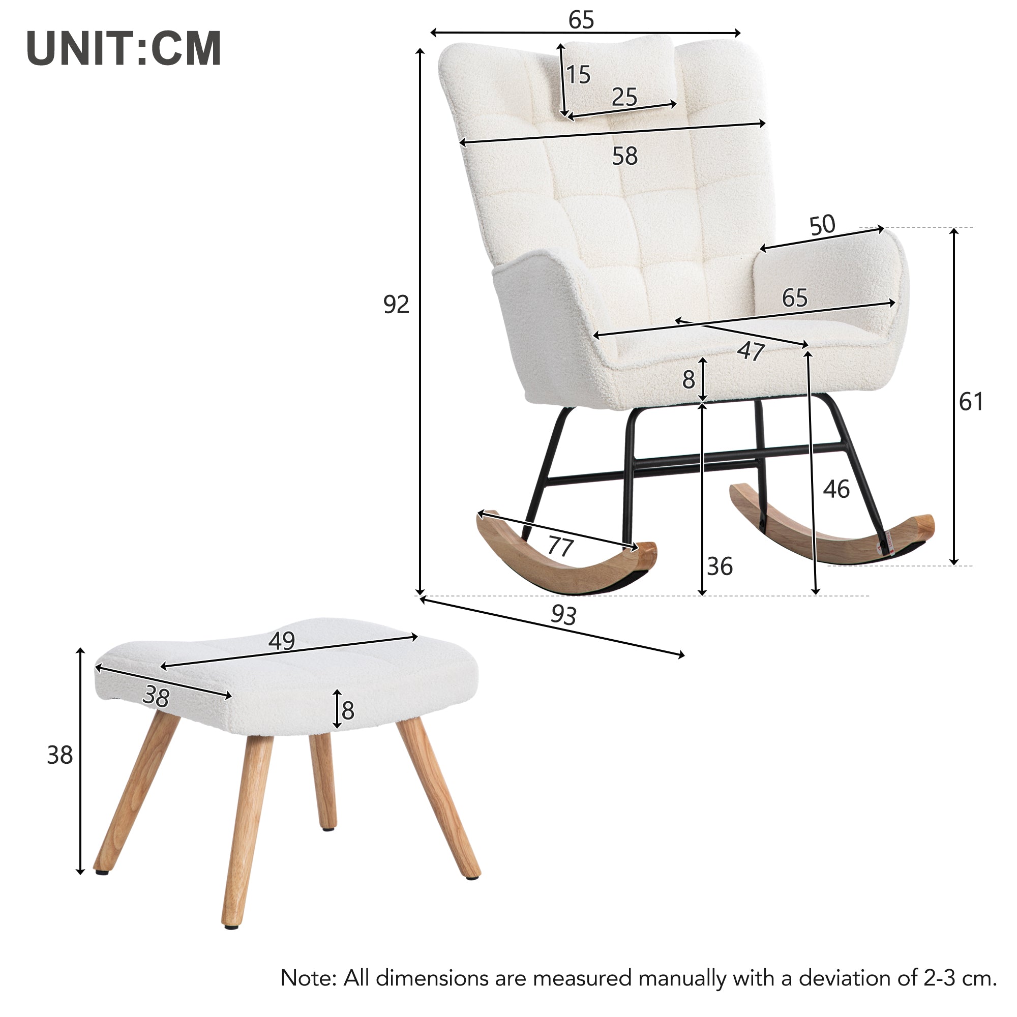 New Modern Teddy Fabric Tufted Upholstered Rocking Chair with Pull-Out Footrest, White