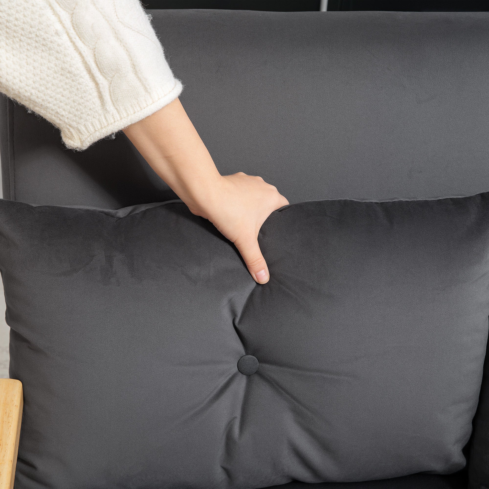 4-in-1 Double Sofa Bed with Pillows, Velvet-Feel Dark Grey