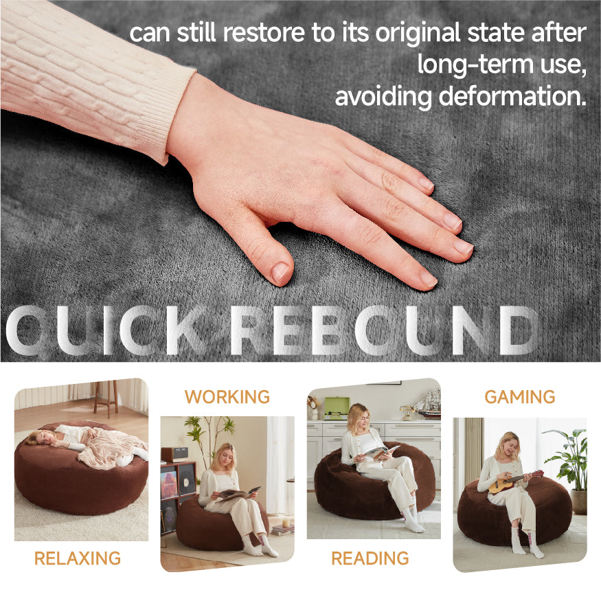 Large 6-Foot Bean Bag Sofa Chair Plush Reading Lounger Flannelette, Dark Gray