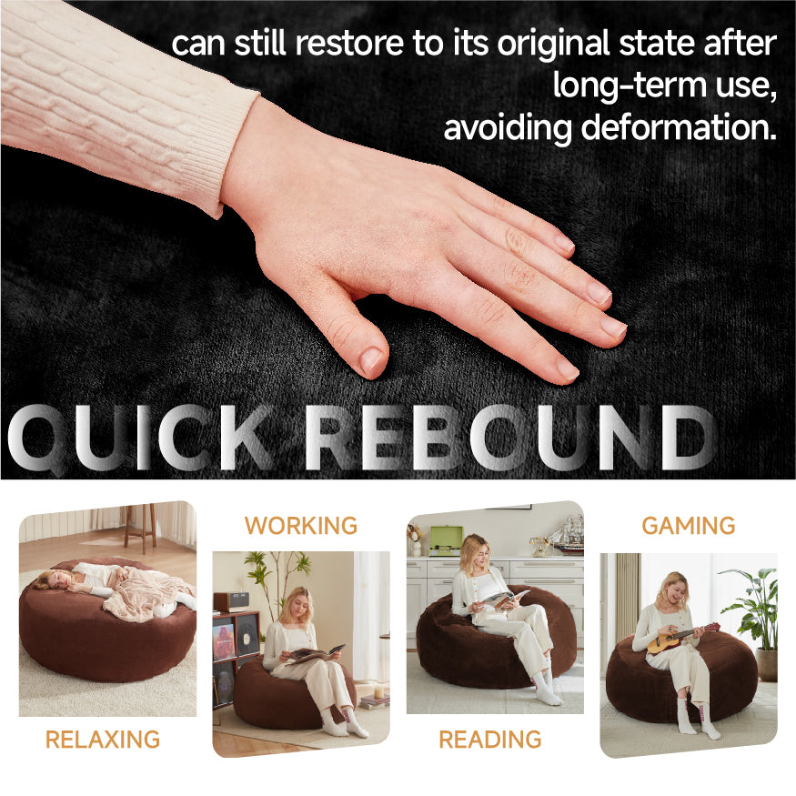 Large 6-Foot Bean Bag Sofa Chair, Plush Reading Lounger for Adults, Black Flannelette