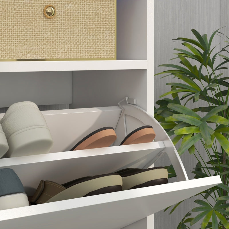 Shoe Storage Cabinet, 16 Pair with Flip Doors, High Gloss White