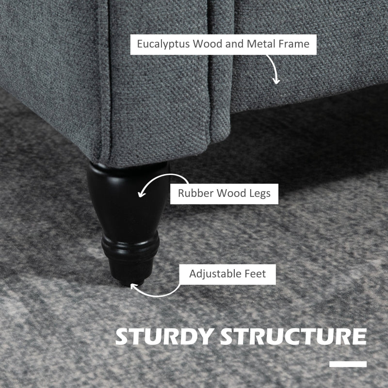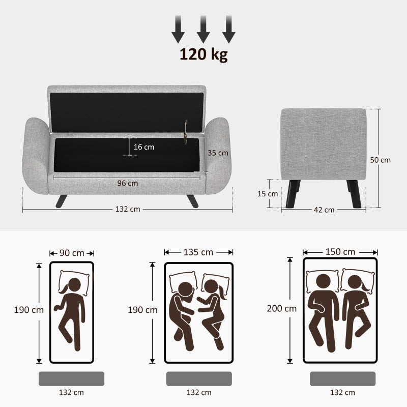 Storage Ottoman with Armrest Upholstered Bench Linen Dark Grey