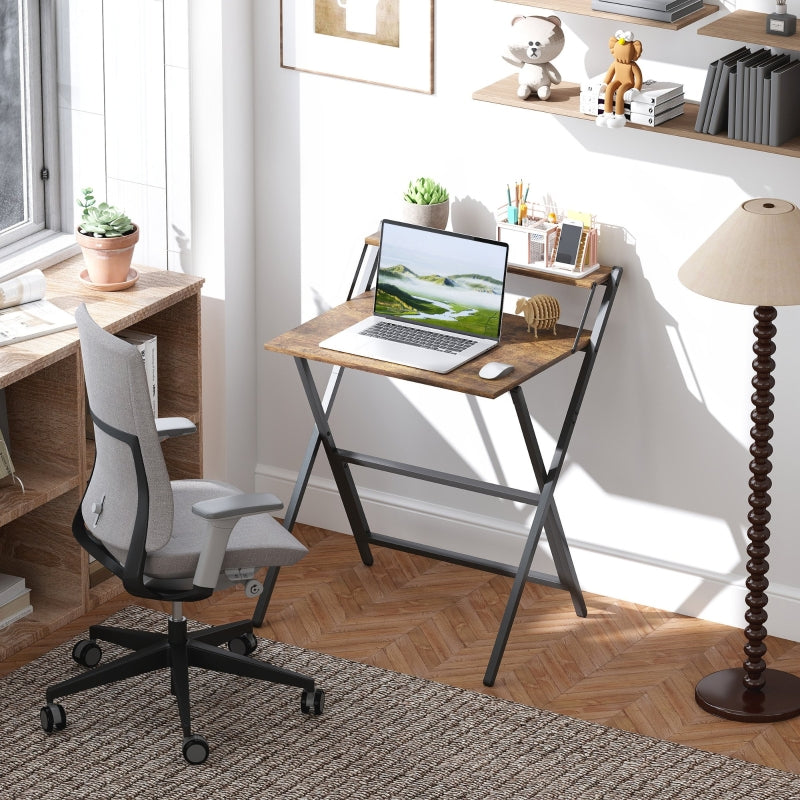 70 cm Folding Computer Desk with Monitor Shelf, Rustic Brown