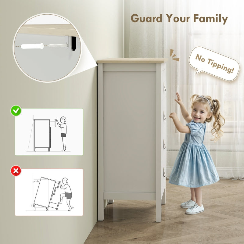 Bedroom Chest of Drawers Modern 4 Drawer Dresser PU Leather Handles White