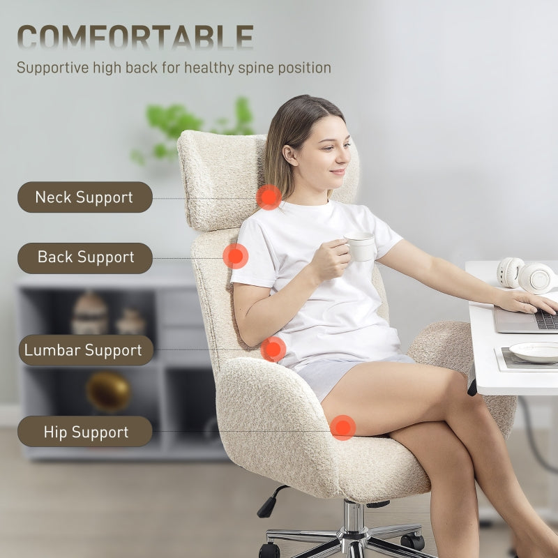 Office Chair, Adjustable Swivel with Rolling Wheels, Cream White Fabric