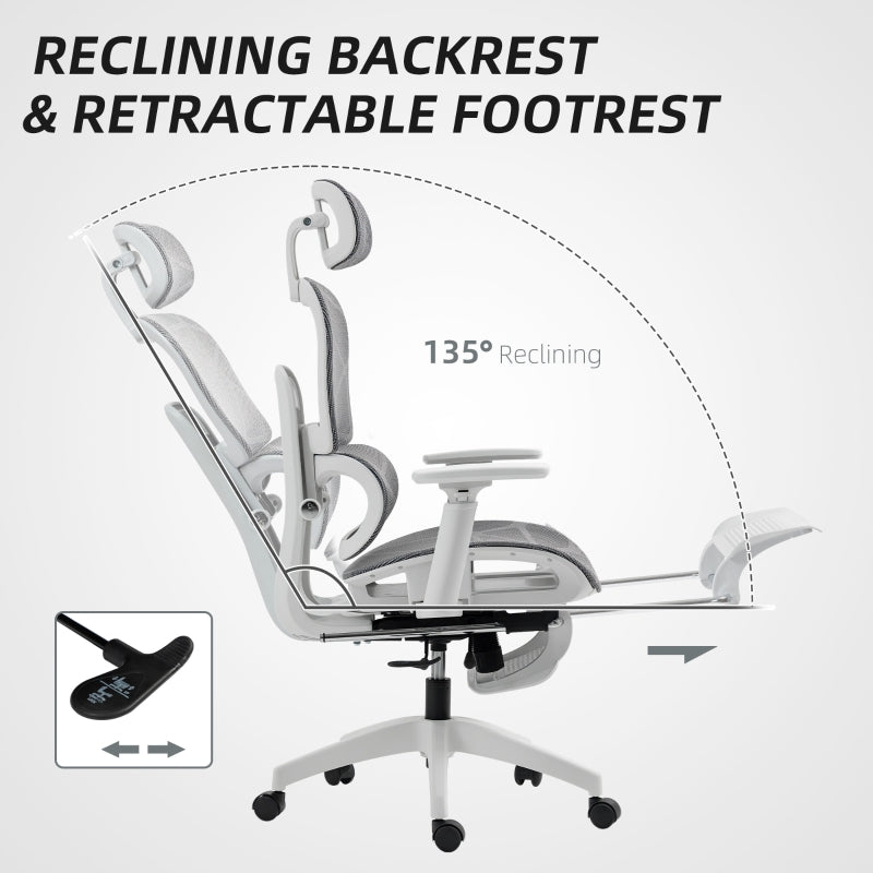 Multi-Adjustable Office Chair Mesh, Grey and White