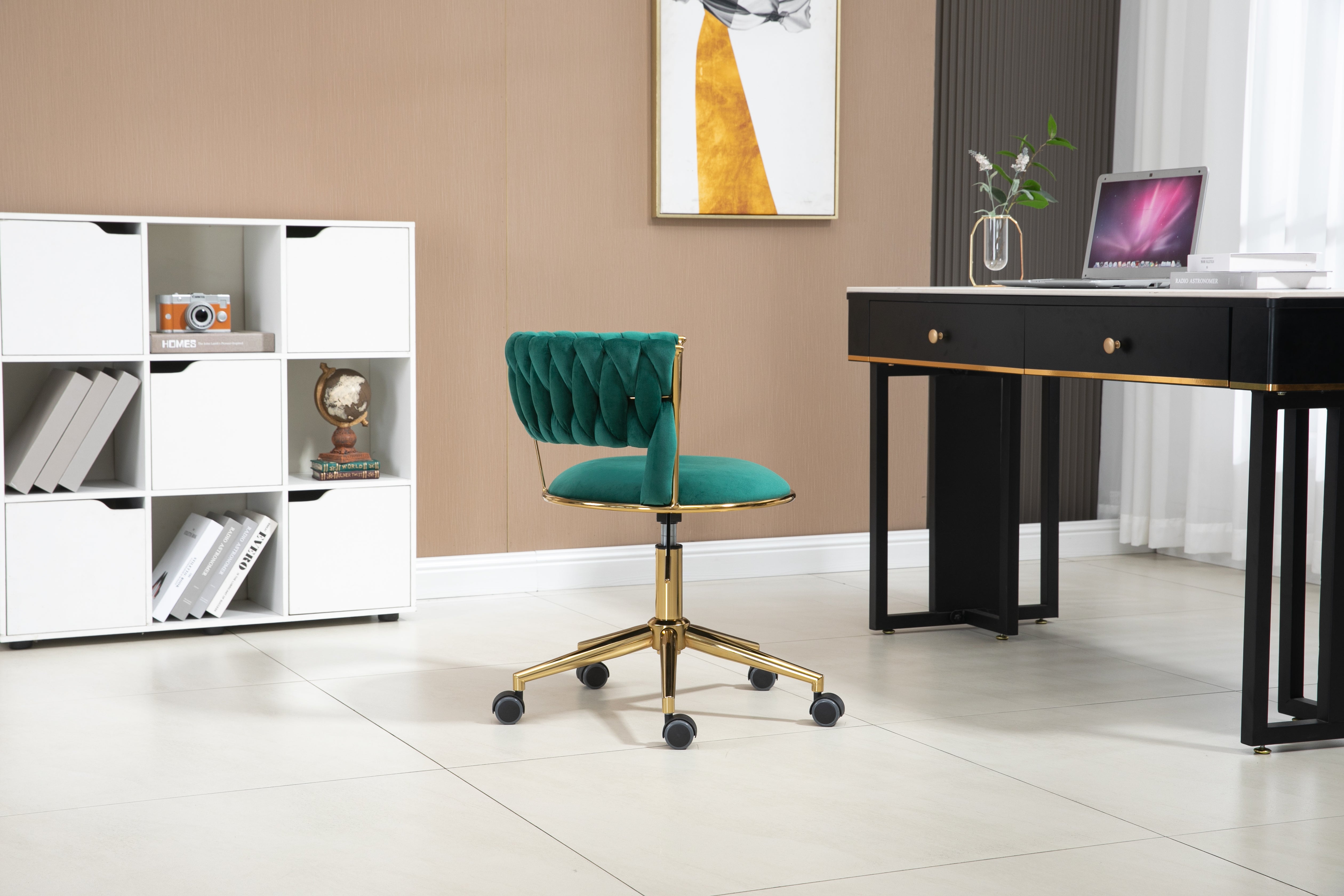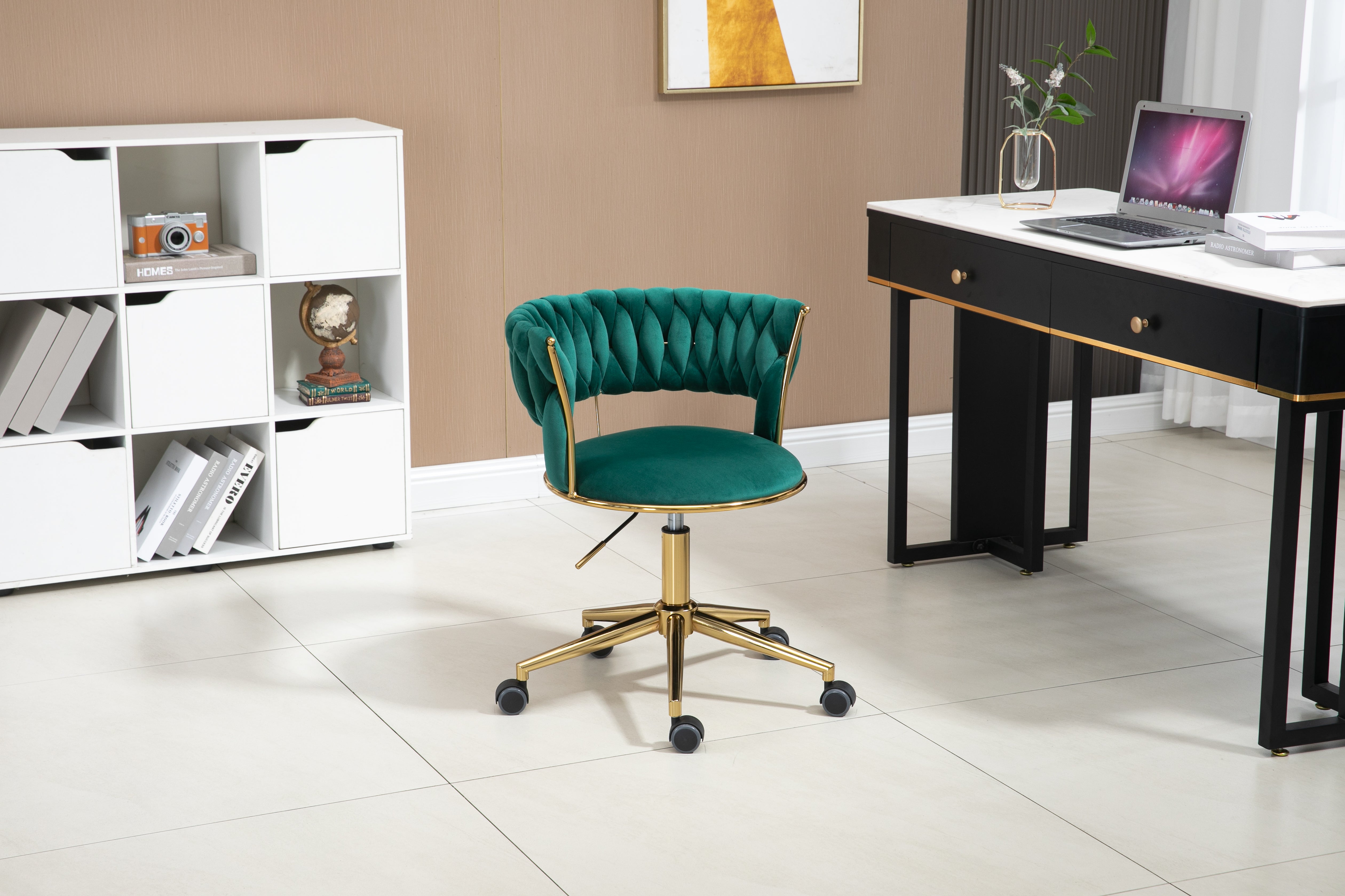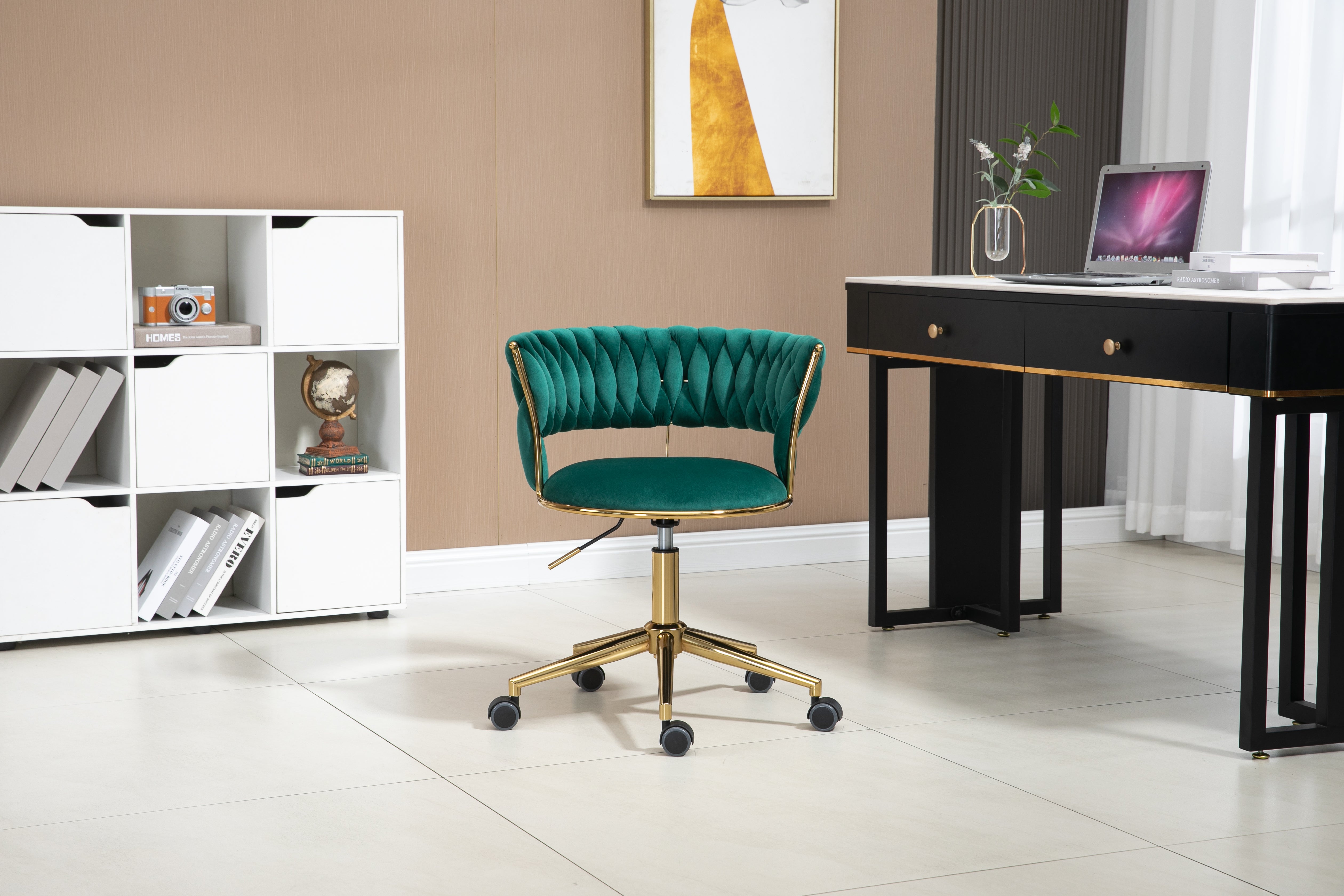 GOMYWAY Velvet Office Desk Chair with Hand Woven Backrest, 360° Swivel & Height Adjustable, Emerald