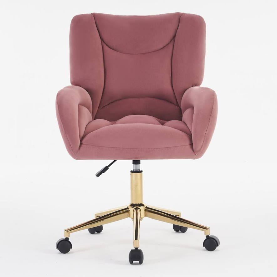 Full KD Velvet Fabric Adjustable Height Swivel Home Office Chair, Pink