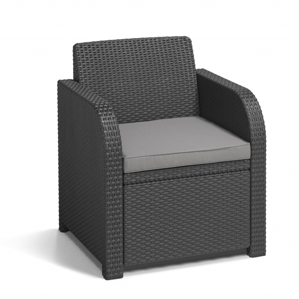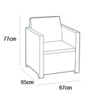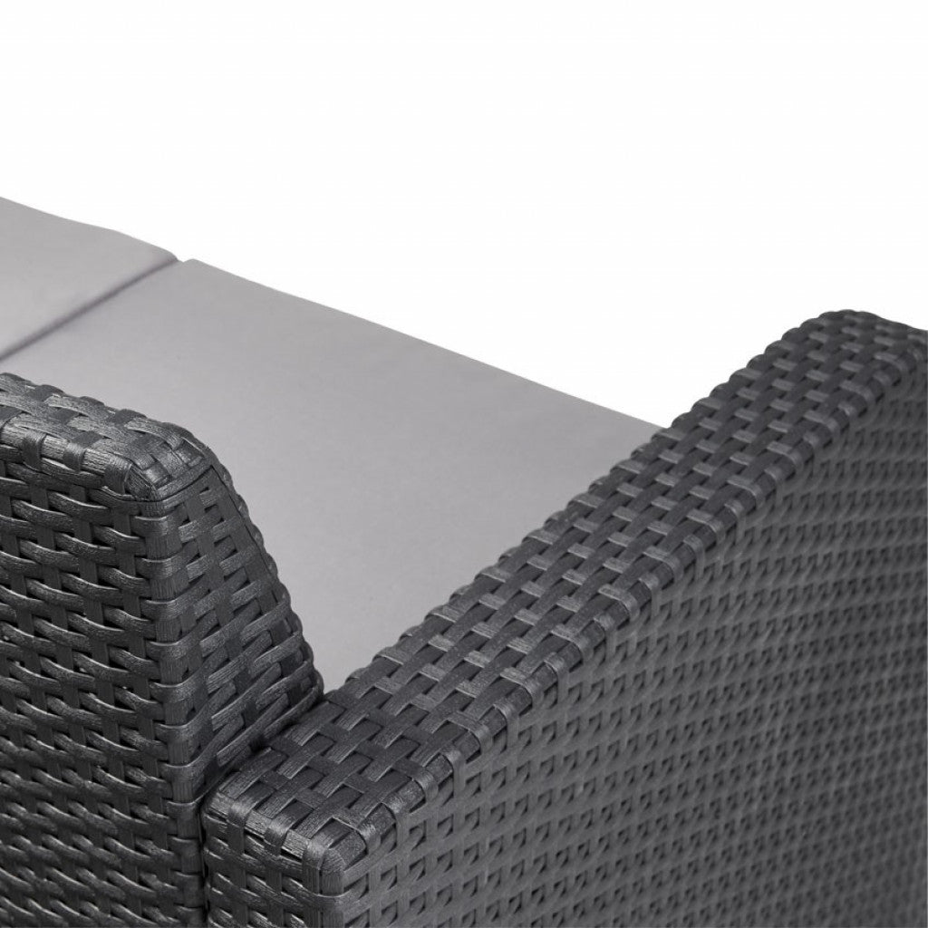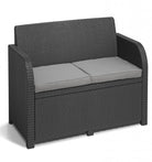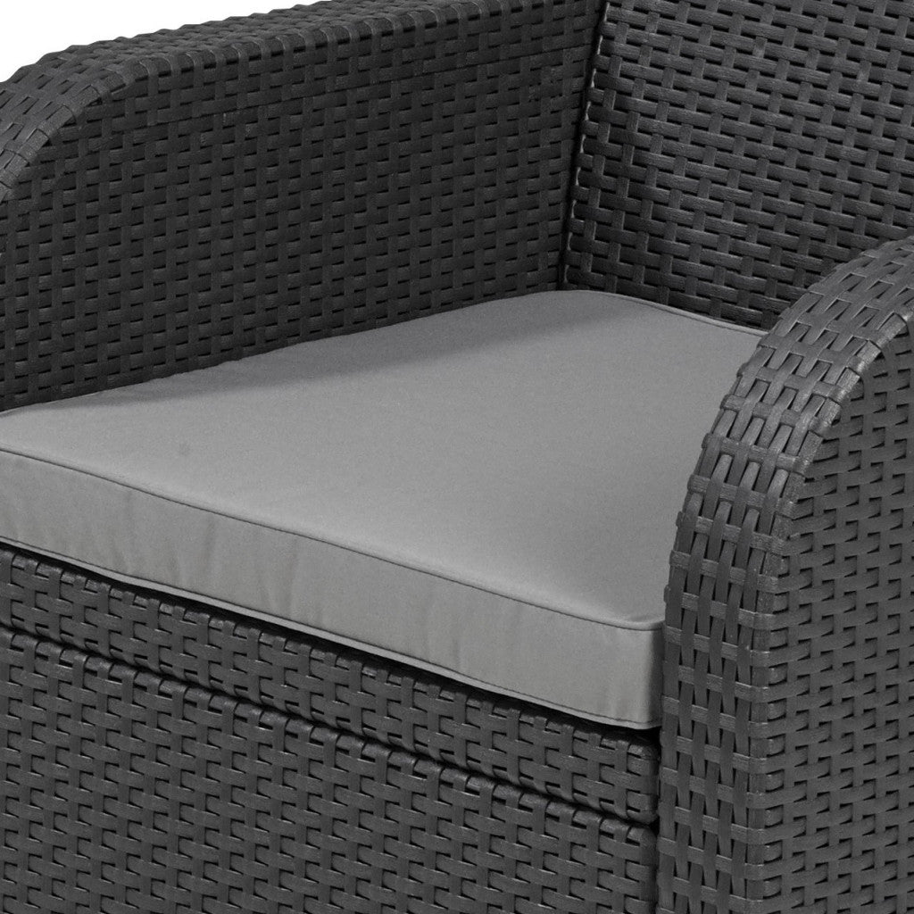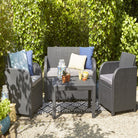 The Oklahoma Lounge set offers a smart and stylish seating solution that makes a fabulous addition to your garden. With a two seater sofa and two armchairs completed with plush polyester seat pads, this set provides optimum comfort and relaxation. The Oklahoma boasts a compact and space saving functionality with a distinctive graphite finished flat weave. It is crafted with a weather-resistant and UV protected resin that prevents the set from rusting, decay, and peeling so you can rest assured that this furniture will last well and remain low-maintenance all year round.
