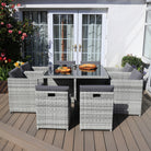 Introducing the Nevada 8-Seater Cube Set with Square Table, a versatile and sophisticated outdoor furniture ensemble designed to maximize your space without compromising on style or comfort. Crafted from durable synthetic rattan in a sleek flat weave design, this set exudes contemporary elegance while withstanding the elements with ease. The sturdy steel frame provides reliable support, ensuring stability and durability for years to come.