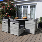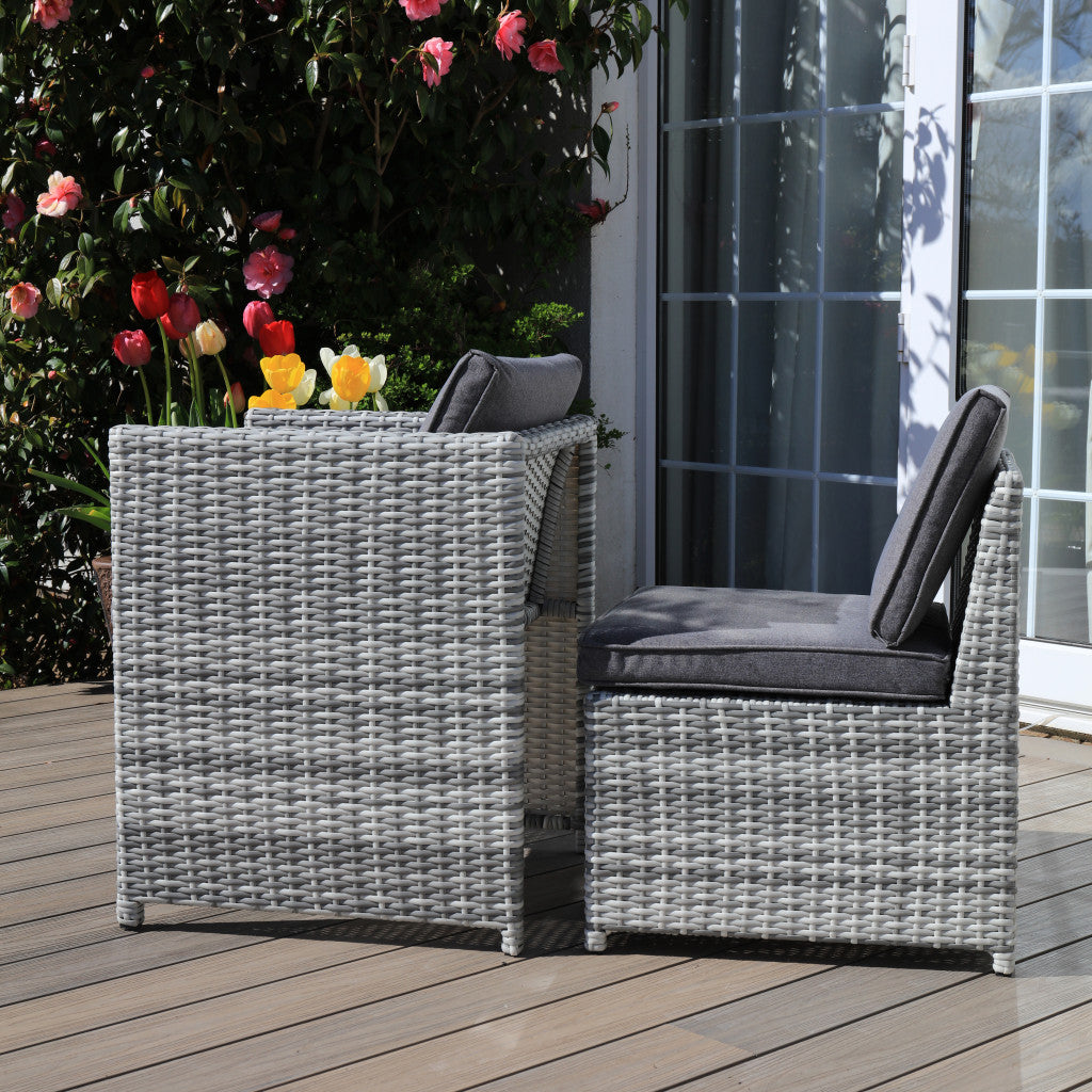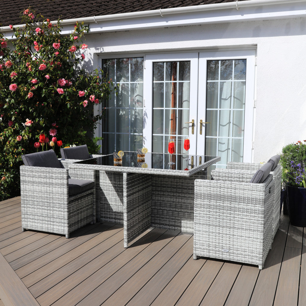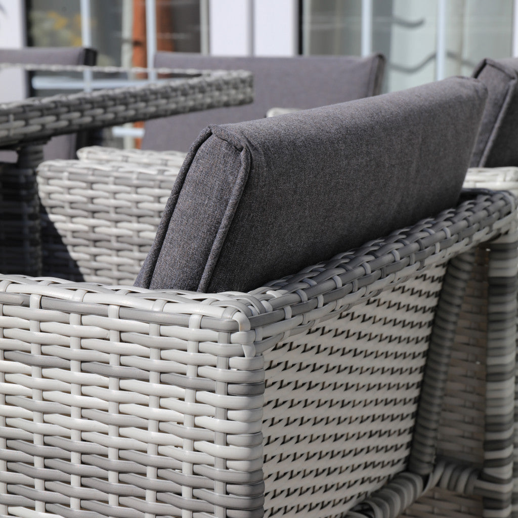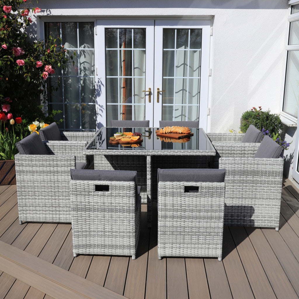 In a timeless shade of grey, the Nevada Cube Set effortlessly complements any outdoor aesthetic, offering a seamless blend of form and function. Complete with plush dark grey cushions, crafted for both comfort and durability, this set invites you and your guests to relax in luxury under the sun or stars. What sets the Nevada 8-Seater Cube Set apart is its intelligent design – the armless chairs can be effortlessly tucked inside the armchairs when not in use, providing a sleek and space-saving configuration. And, should you wish to accommodate more people for a lively gathering, the set can be easily transformed into an 8-seater, making it the ultimate solution for those seeking a flexible outdoor seating option that doesn't compromise on quality or style.
