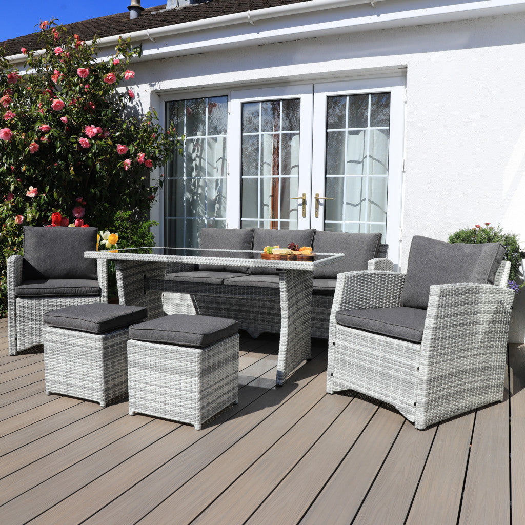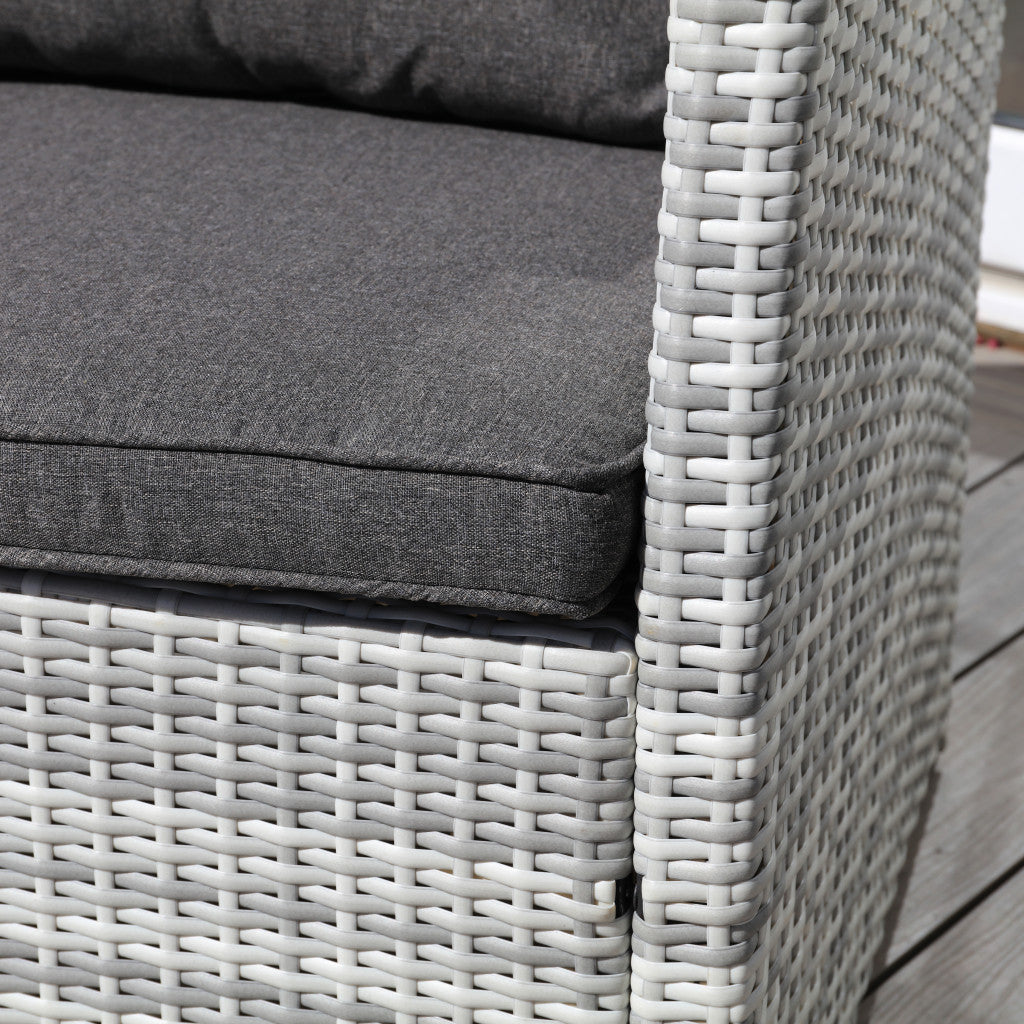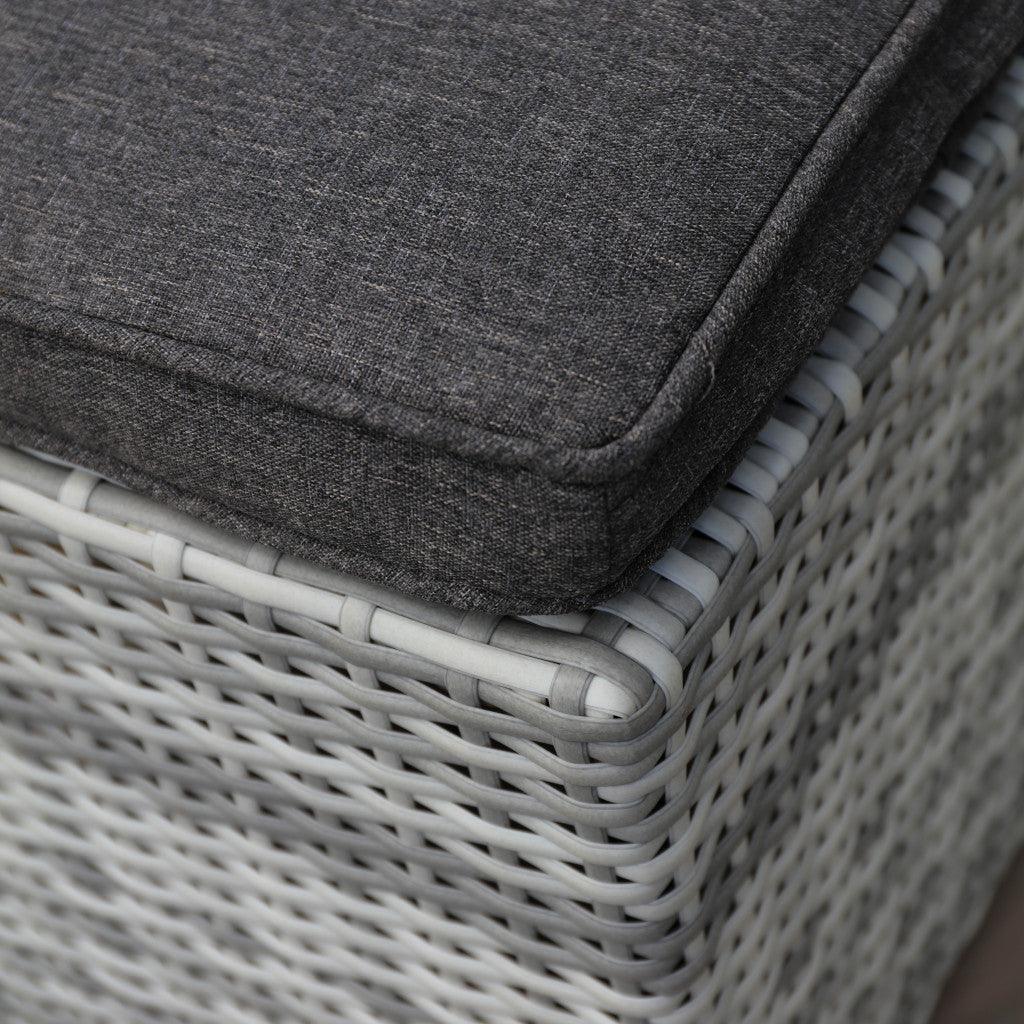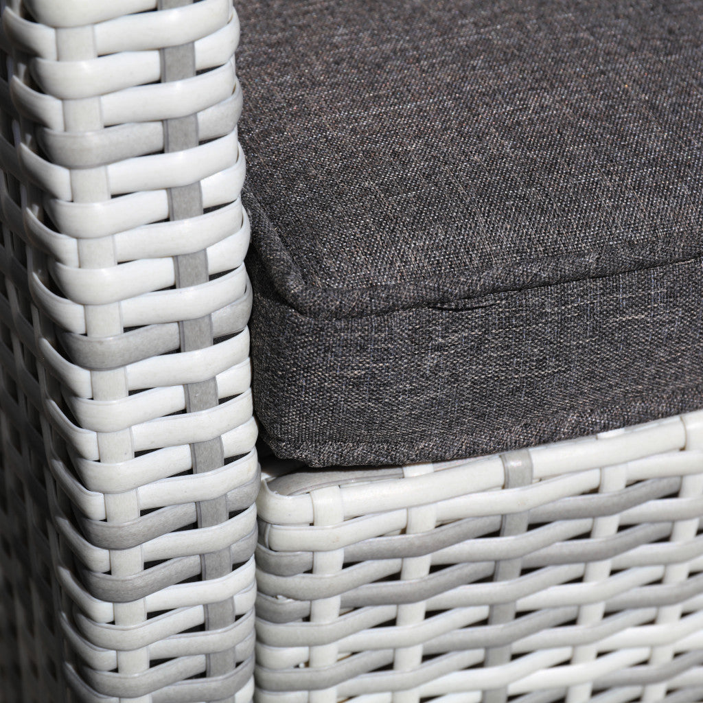 Sink into the plush dark grey BSFR cushions, not only designed for comfort but also adhering to stringent safety standards. Whether you're hosting a casual brunch or an intimate dinner under the stars, this set creates a cozy and inviting atmosphere. With the perfect balance of aesthetic appeal and practicality, the Nevada Dining Sofa Set transforms your outdoor dining space into a haven of sophistication and relaxation, making every meal an opportunity for comfort and style.