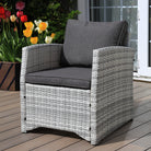 Introducing the Nevada Dining Sofa Set, a harmonious blend of modern design and outdoor comfort to elevate your dining experience. Crafted with precision from durable synthetic rattan in an exquisite flat weave pattern, this set seamlessly combines style and resilience. The robust steel frame provides a sturdy foundation, ensuring stability and durability throughout seasons. In a chic shade of grey, the Nevada Dining Sofa Set effortlessly integrates into any outdoor setting, offering a contemporary touch to your patio or garden.