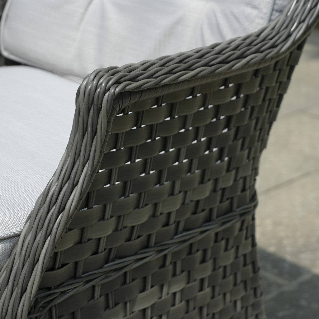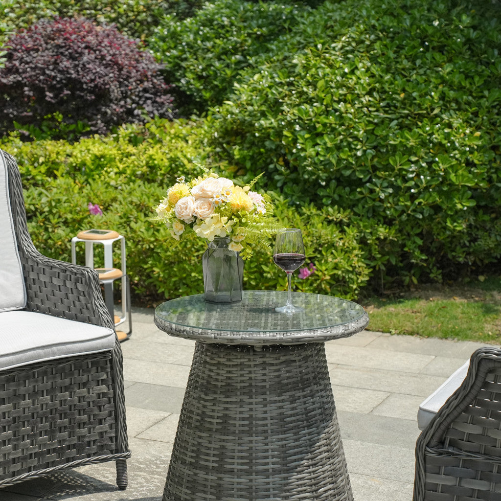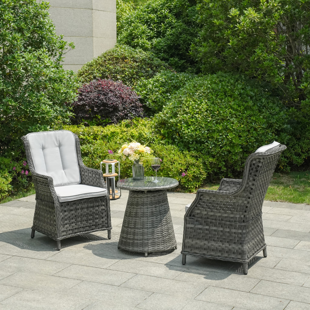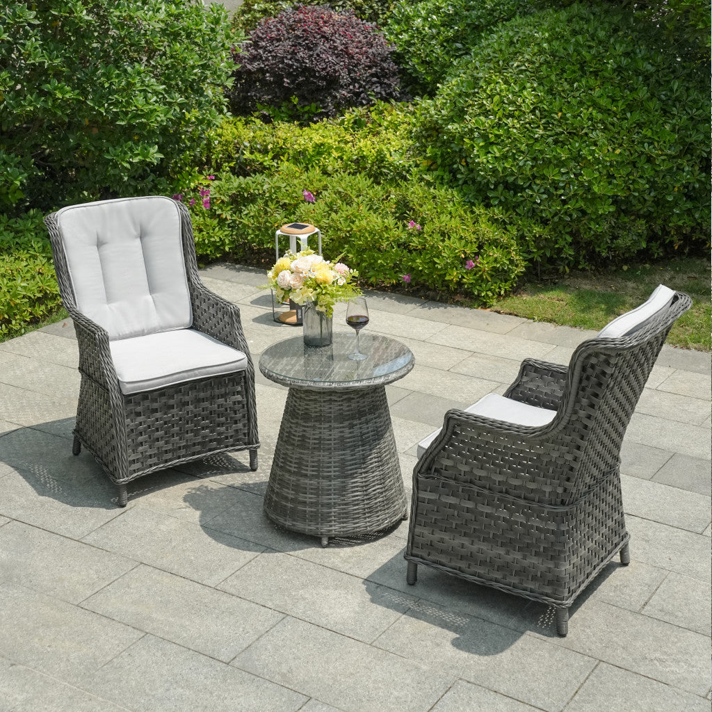 Introducing the Ravenna Bistro Set in a sleek grey finish, a luxurious upgrade for any garden or patio. Whether you're savouring a gourmet meal or enjoying a laid-back morning coffee, this set promises durability and sustainability, guaranteeing years of outdoor enjoyment. The high-back chairs not only deliver optimal support and comfort but also infuse a chic aesthetic into your outdoor setting, enhancing your dining experience with sophistication.