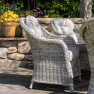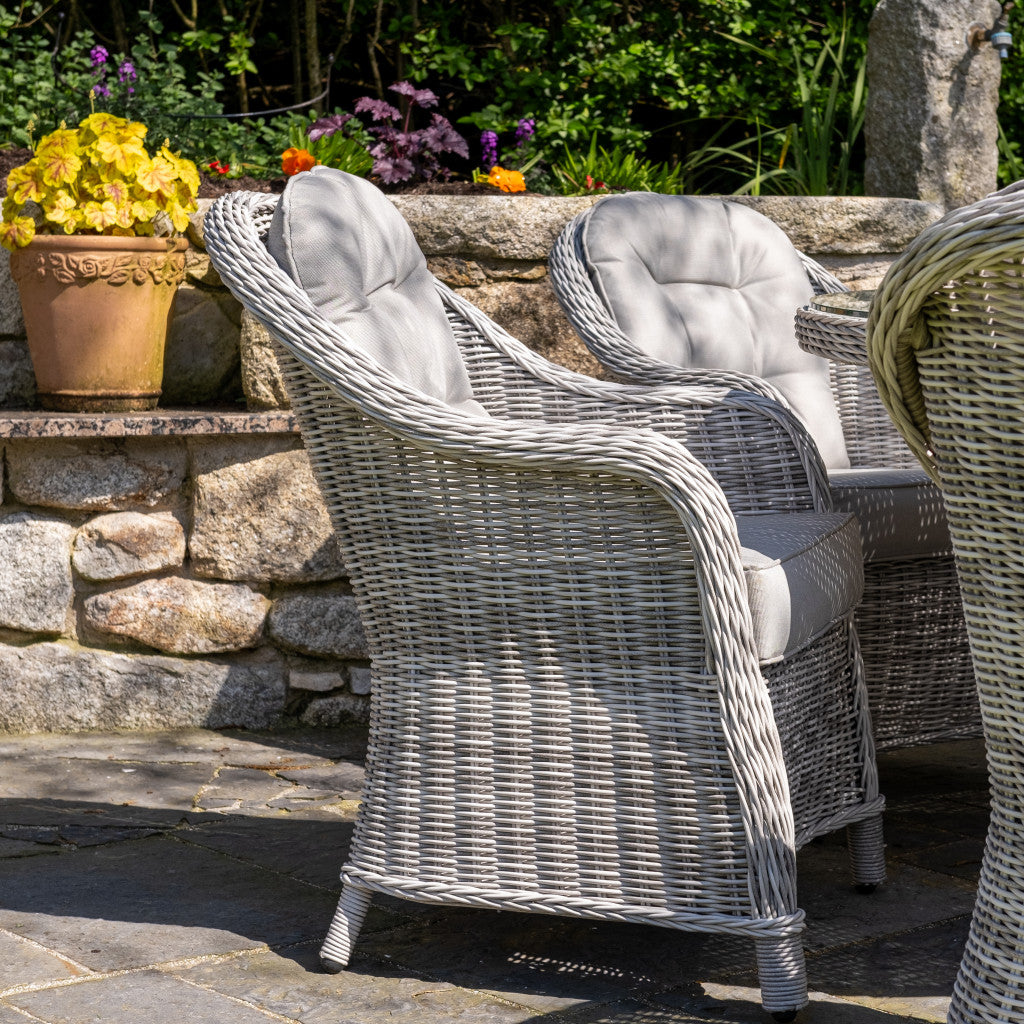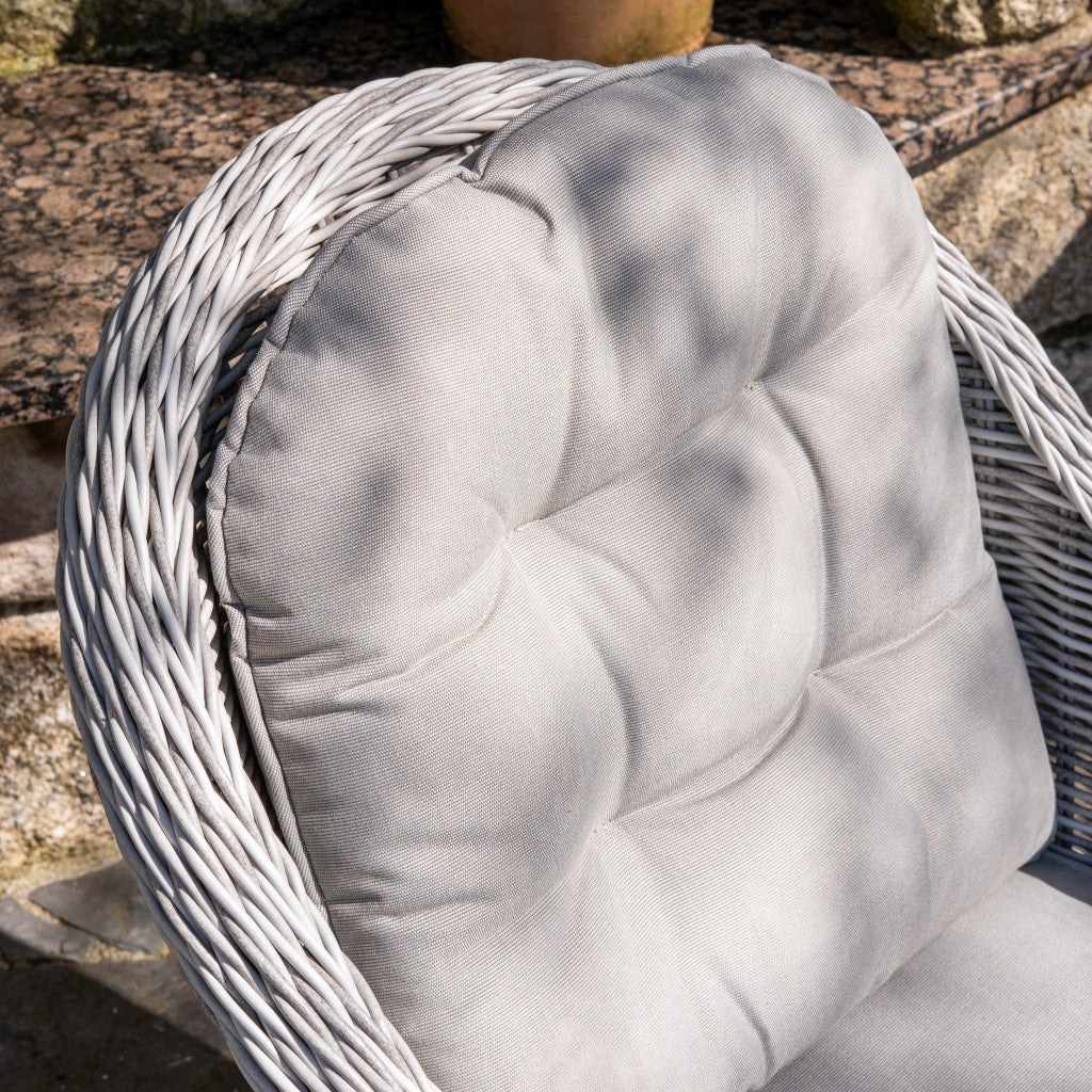 Like all Rathwood Furniture, it’s designed with the best all-weather rattan, crafted from a high-quality synthetic PPE material weave with varied textures and tones woven around 1.4mm thick cast aluminium frames meaning this set will not rust and is fine to be left outdoors. The table top is made of 5mm tempered glass for safety. All cushions are easy to clean and made exclusively of the highest quality UV-protected & weatherproof materials.