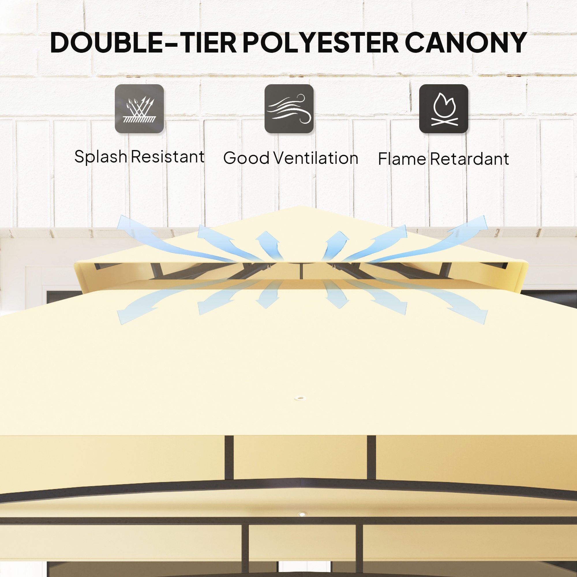 3x3m Garden Gazebo Double Tier Metal Frame Netting, Beige