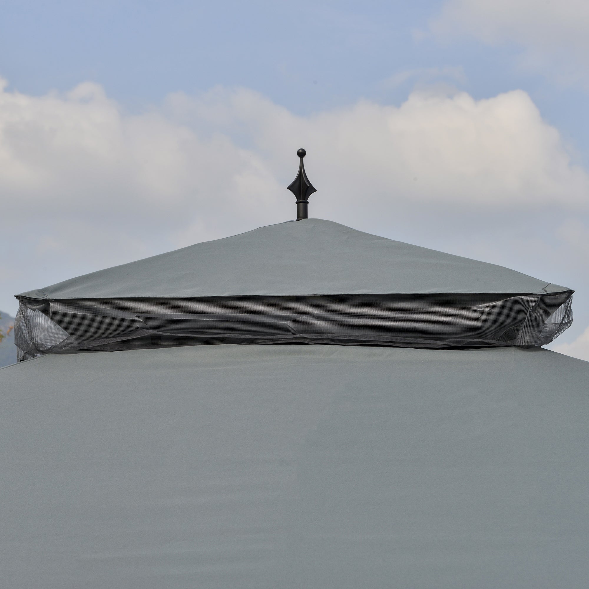 3x3m Garden Gazebo Double Top Outdoor Canopy with Netting - Grey