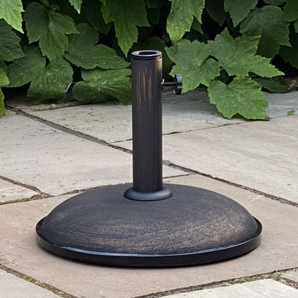 Many parasols come with their own heavy base unit but for those that don’t, there is always this one. Weighing in at 11kg and with a screw clamp to fix the parasol pole to the base, this unit will ensure gusts of wind will not affect your canopy. Let’s face it; the last thing you want in the middle of a meal is to see your parasol sailing over the rooftops!