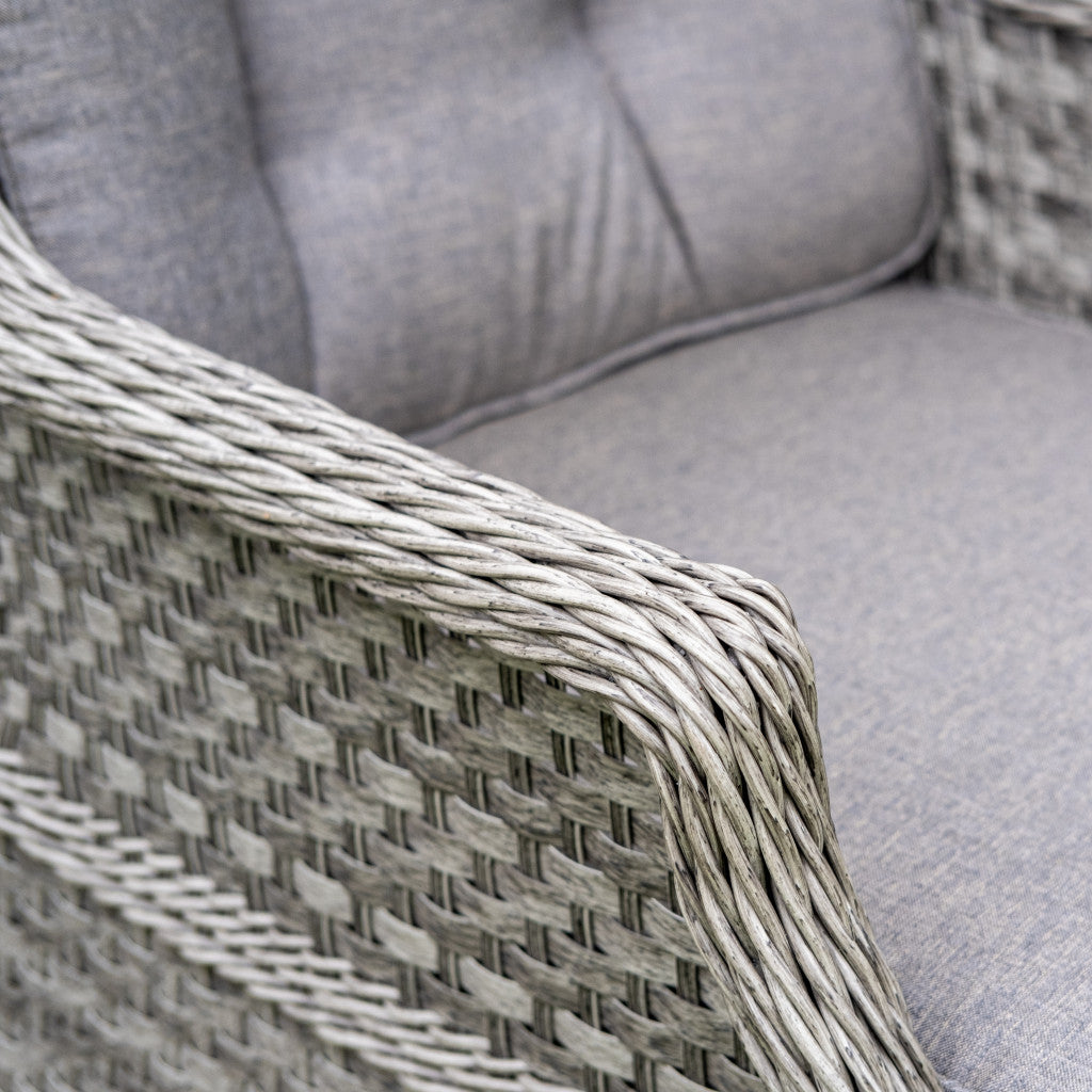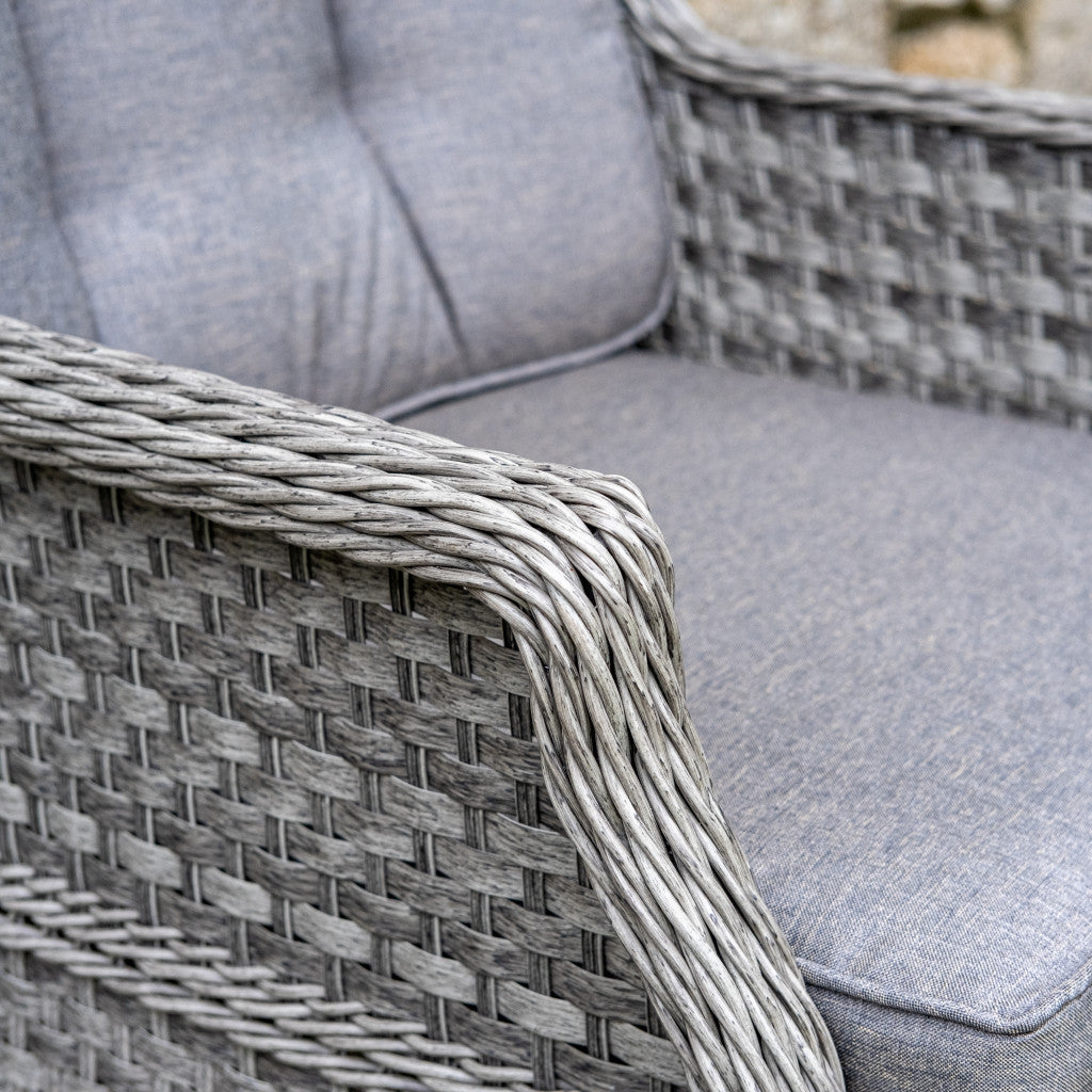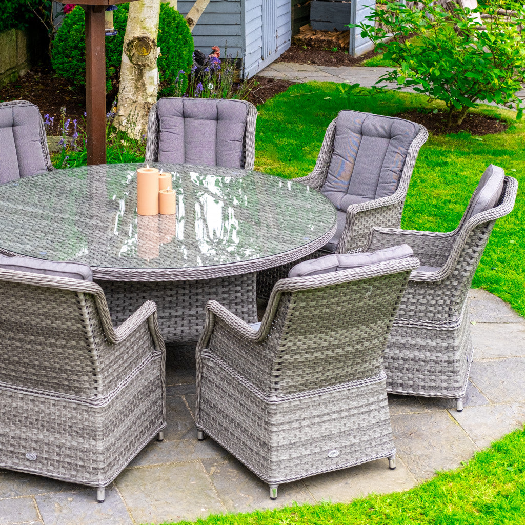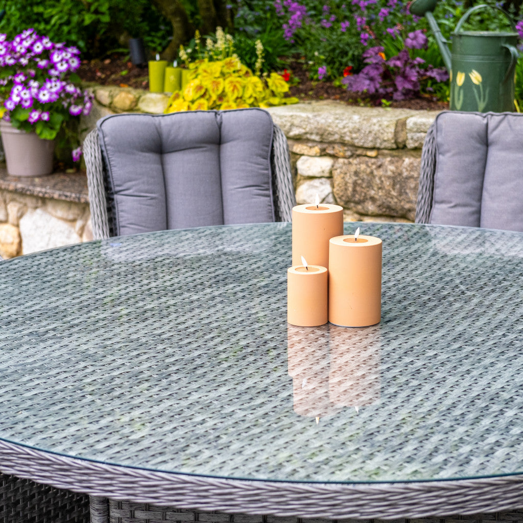Like all Rathwood Furniture, the Bali Range is designed with luxury all-weather rattan, crafted from a high-quality PPE material weave with varied textures and tones. All cushions are machine washable and made exclusively of the highest quality UV-protected & weatherproof materials. The table top is 5mm clear tempered glass with a hole ready to take a parasol and stands on a 1.2mm thick aluminium frame finished with grey rattan detailing that matches the Bali chairs. The table requires a little simple and easy assembly whilst the chairs are supplied ready to sit on. The set is covered by a 5-year structural guarantee but please note this does not cover the glass top.