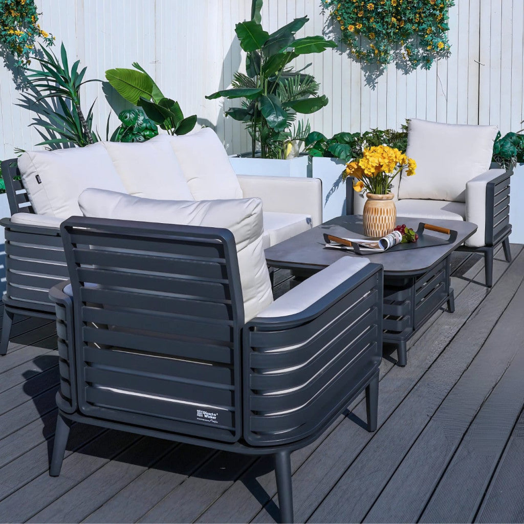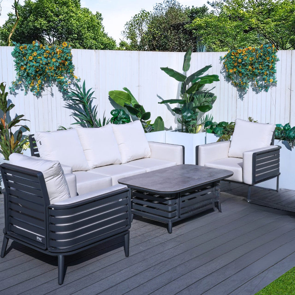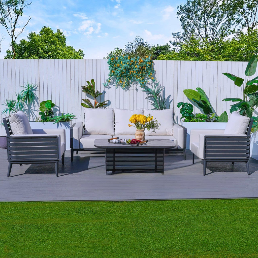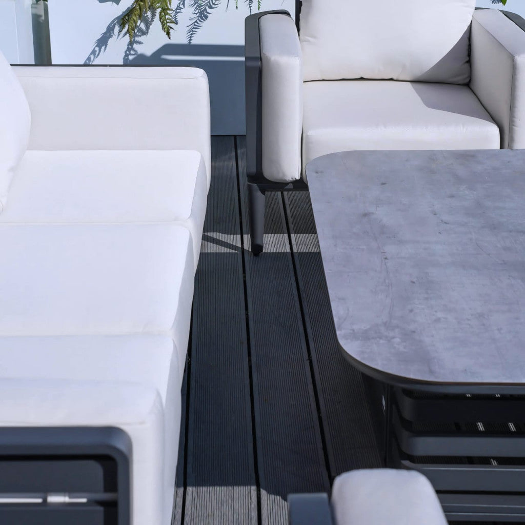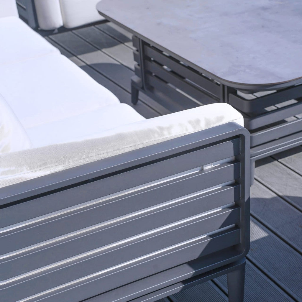 Elevate your outdoor living with the stylish Olympus Sofa Set in Grey. Designed for ultimate comfort, it features thick, plush cushions that make relaxing with family and friends a true pleasure. The durable aluminium frame provides long-lasting reliability, while the sofa’s curved sides add a sleek and modern aesthetic. Perfect for any outdoor space, the Olympus Sofa Set is where style meets functionality.