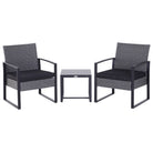 2 Seater Patio Set with Cushions Rattan, Grey/Black