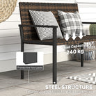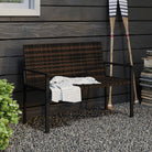 2 Seater Rattan Garden Bench Quick-Drying Cotton Padding Loveseat, Mixed Brown