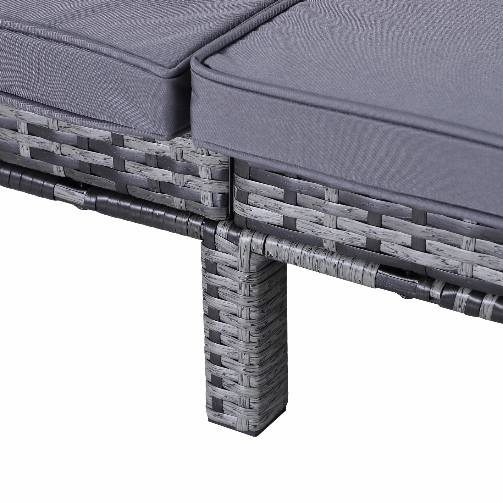 2 Seater Rattan Lounger Adjustable Double Chaise with Cushion - Grey