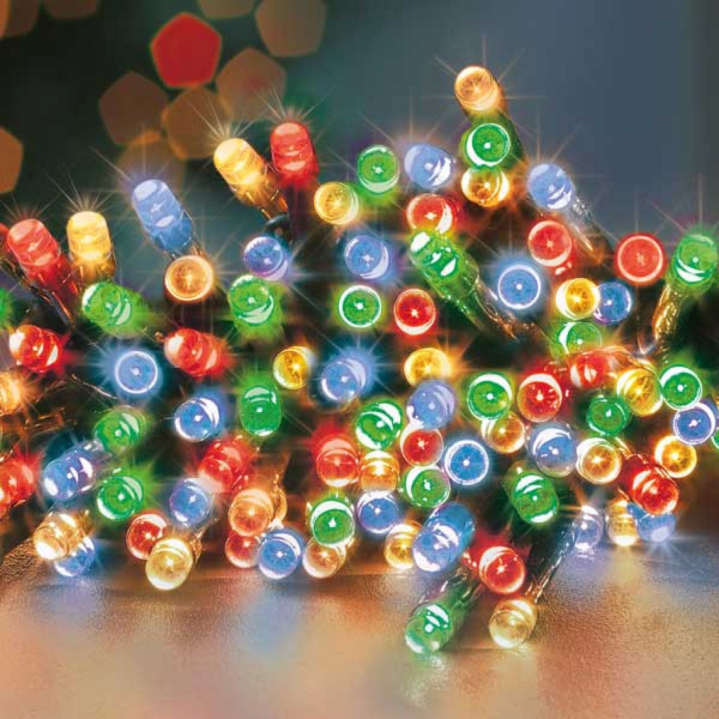 These Premier Decorations Multicoloured 200 LED Timelights 20m LIT Length with Timer will brighten up your home this Christmas. Highly suitable for any Christmas display either indoor or outdoor. These LED lights come with an energy-efficient timer; 8 hours on, 16 hours off and 8 settings including static. With no plugs, it means no mess.