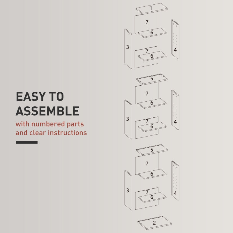 Dimensions: 140H x 33W x 24D cm. Single compartment: 14H x 30W x 15.5D cm. Maximum load 15 kg. Easy to assemble.
