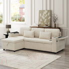 3 in 1 Convertible Corduroy Sofa Bed with Storage Chaise, L-Shaped Sleeper Sofa Couches with Armrest Storage and Charging Station, Pullout Sectional Daybed for Living Room/Bedroom/Office, Beige