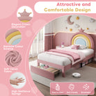 3ft Single Upholstered Bed with Adjustable Rainbow Headboard, Soft Velvet Bed Frame with Storage Drawer, Pink