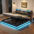 Elevating the experience further, the bed is equipped with RGB LED lighting strips along the headboard and base, fully controlled by a mobile app. With adjustable colours, brightness, and modes, including music sync and timer, you can create a unique ambiance that suits any mood. A built-in charging station with Type-C and USB ports keeps devices powered up, while the sturdy metal and wood frame provides lasting support without the need for a box spring. Practical, stylish, and multifunctional, this bed is designed for modern living.