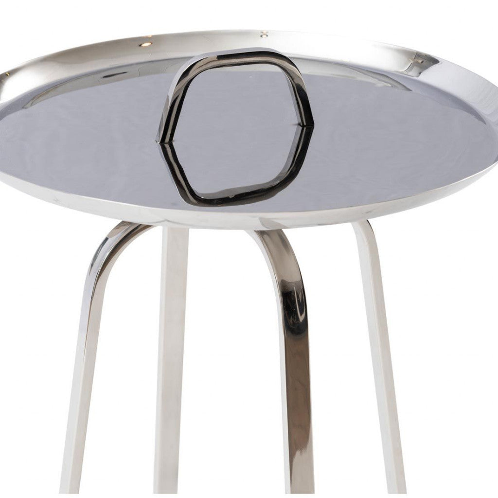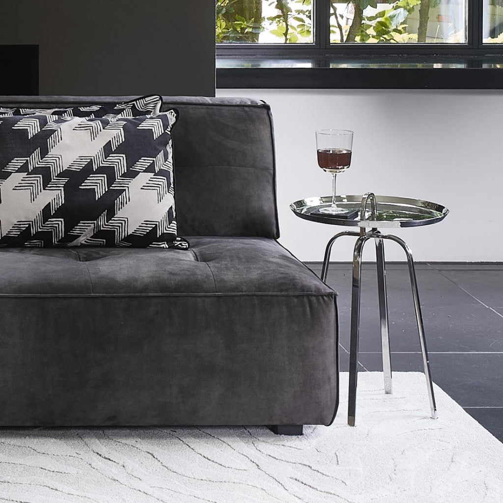 The Alicudi End Table is a sleek side table with a round table top and a sleek four-legged base. There is a practical handle on the table top to move the table. The modern, black iron side table has a diameter of 40 centimeters. Ideal for a cup of coffee or a small snack.