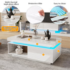 Black High-Gloss Coffee Table with Push-Pull Storage, Particle Board