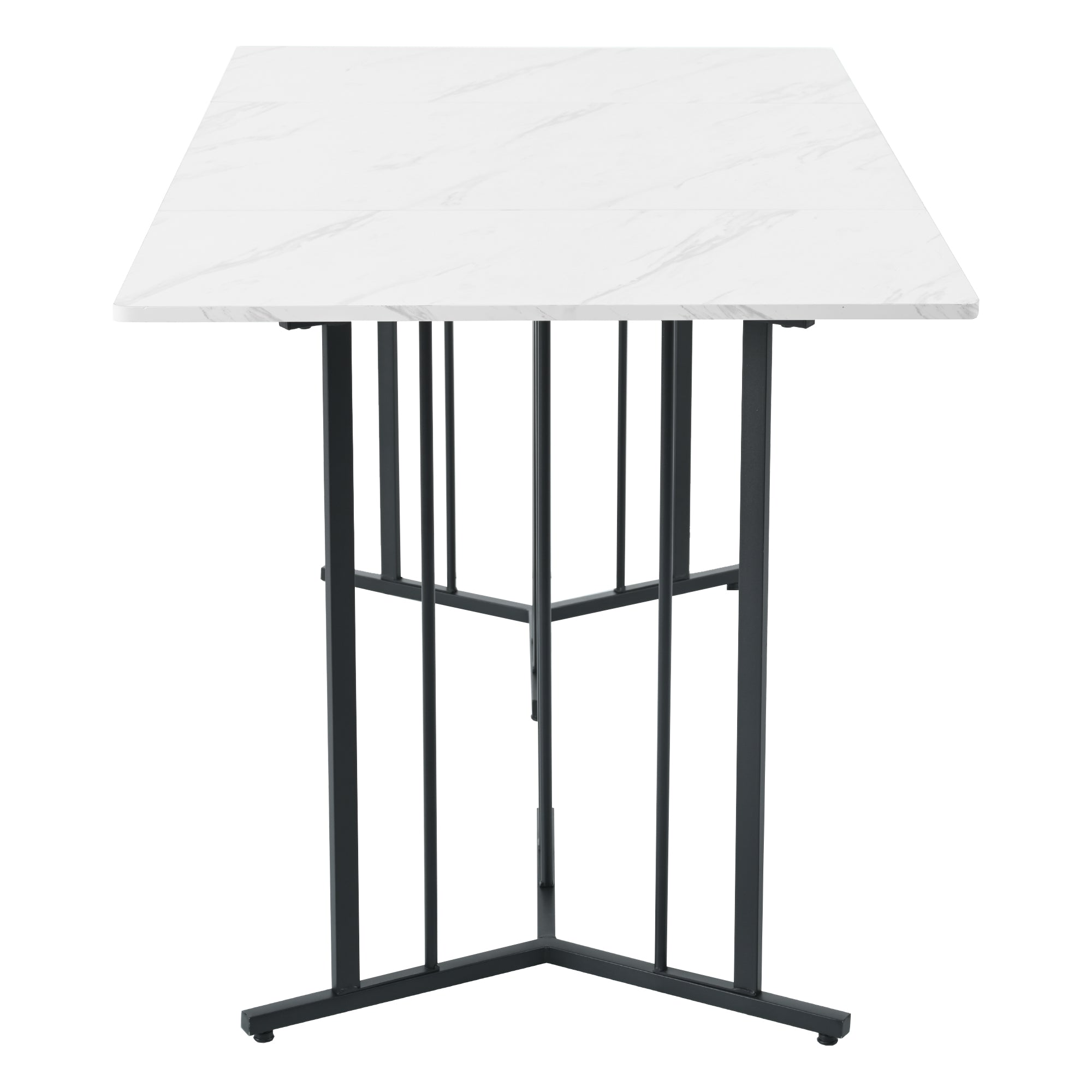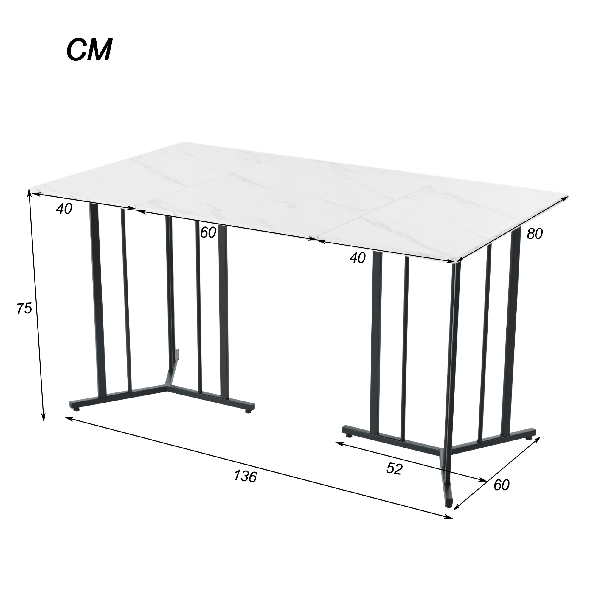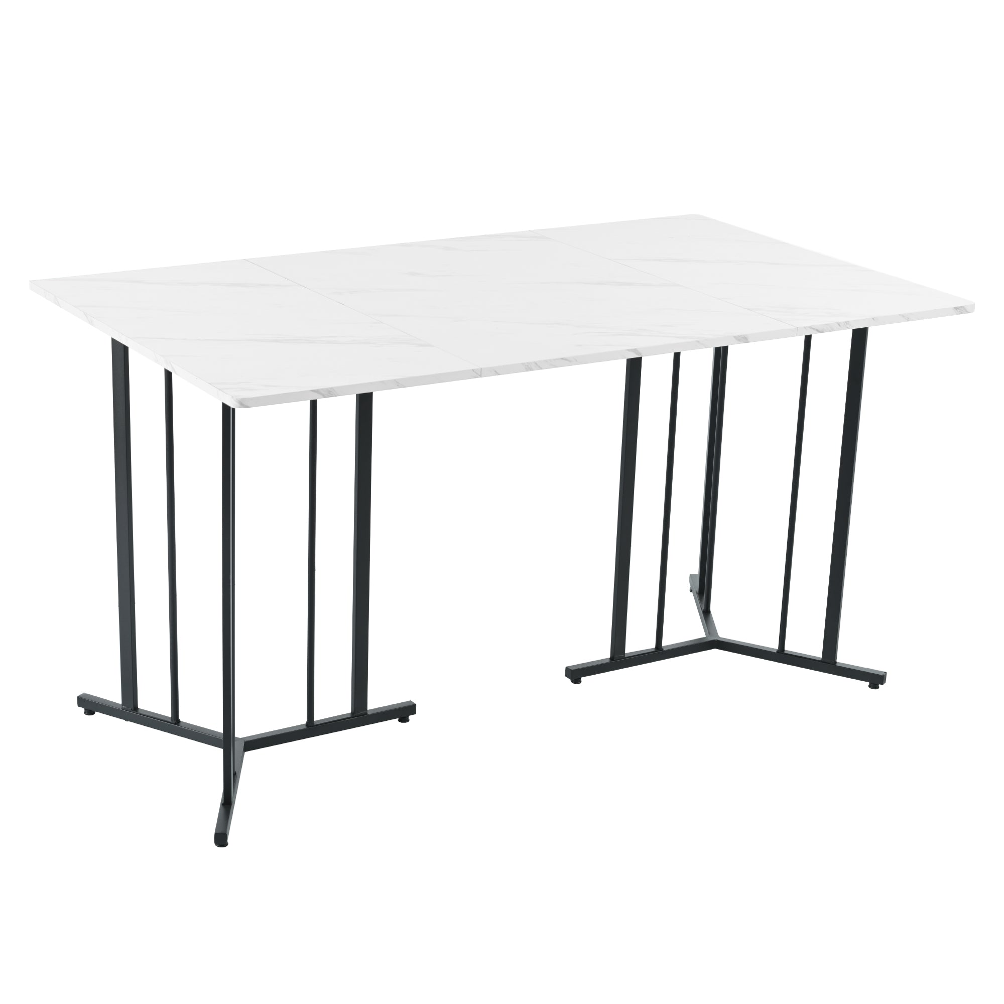 Dining Table 140x80cm, Modern Kitchen Table, Metal Frame, Marble Pattern, White/Black