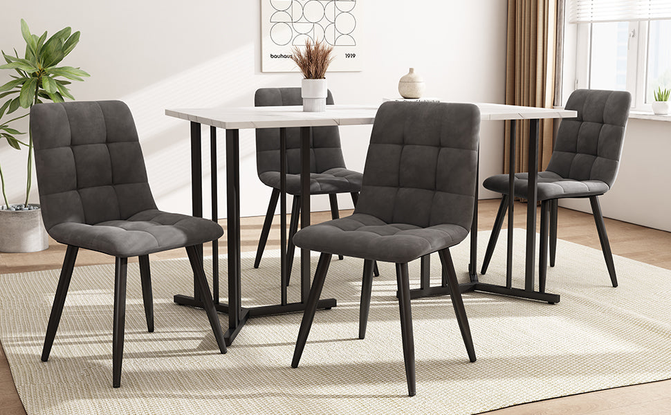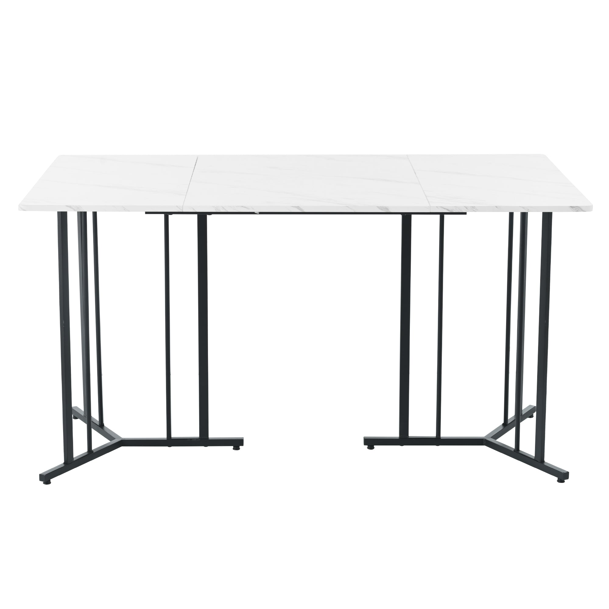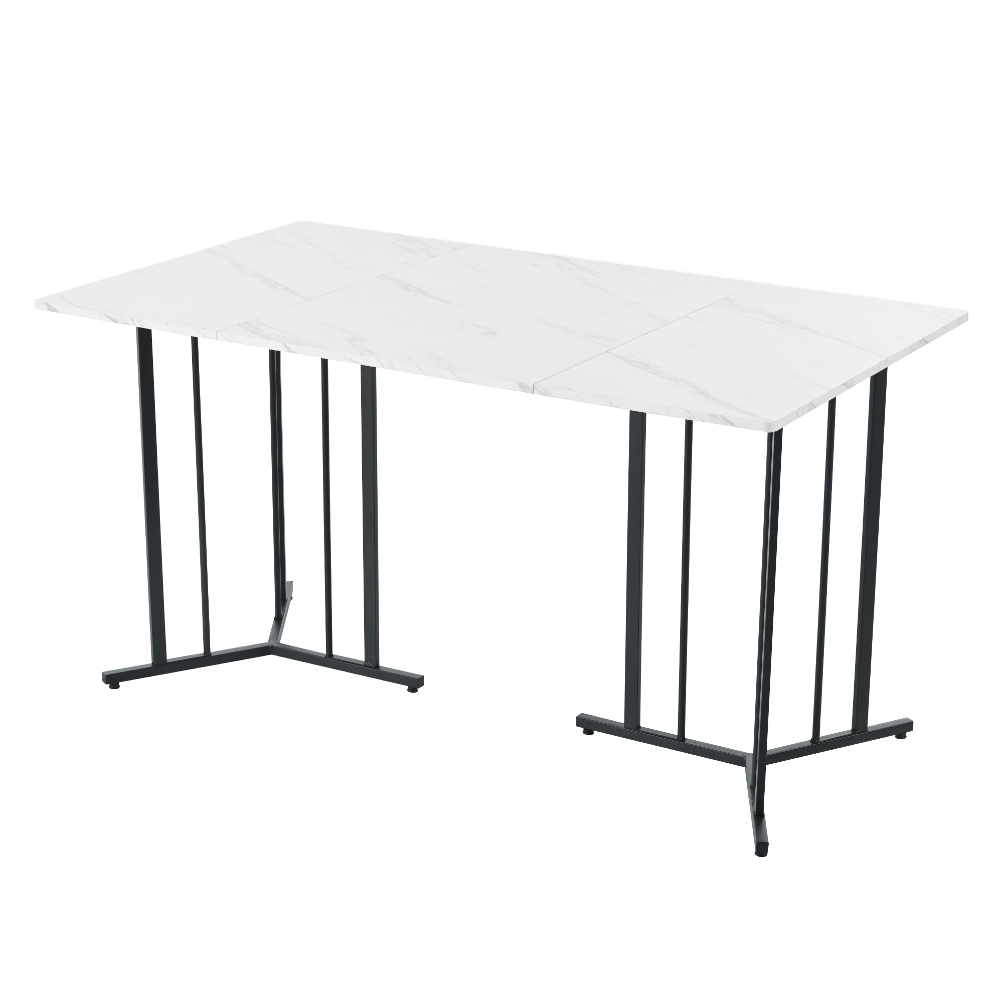 Dining Table 140x80cm, Modern Kitchen Table, Metal Frame, Marble Pattern, White/Black