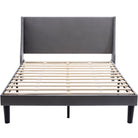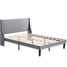Double Bed Velvet Grey 4FT6 Upholstered Bed with Winged Headboard, Wood Slat Support