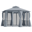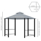 Hexagon Gazebo Patio Tent 3x3m w/ 2 Tier Roof & Side Panel - Grey