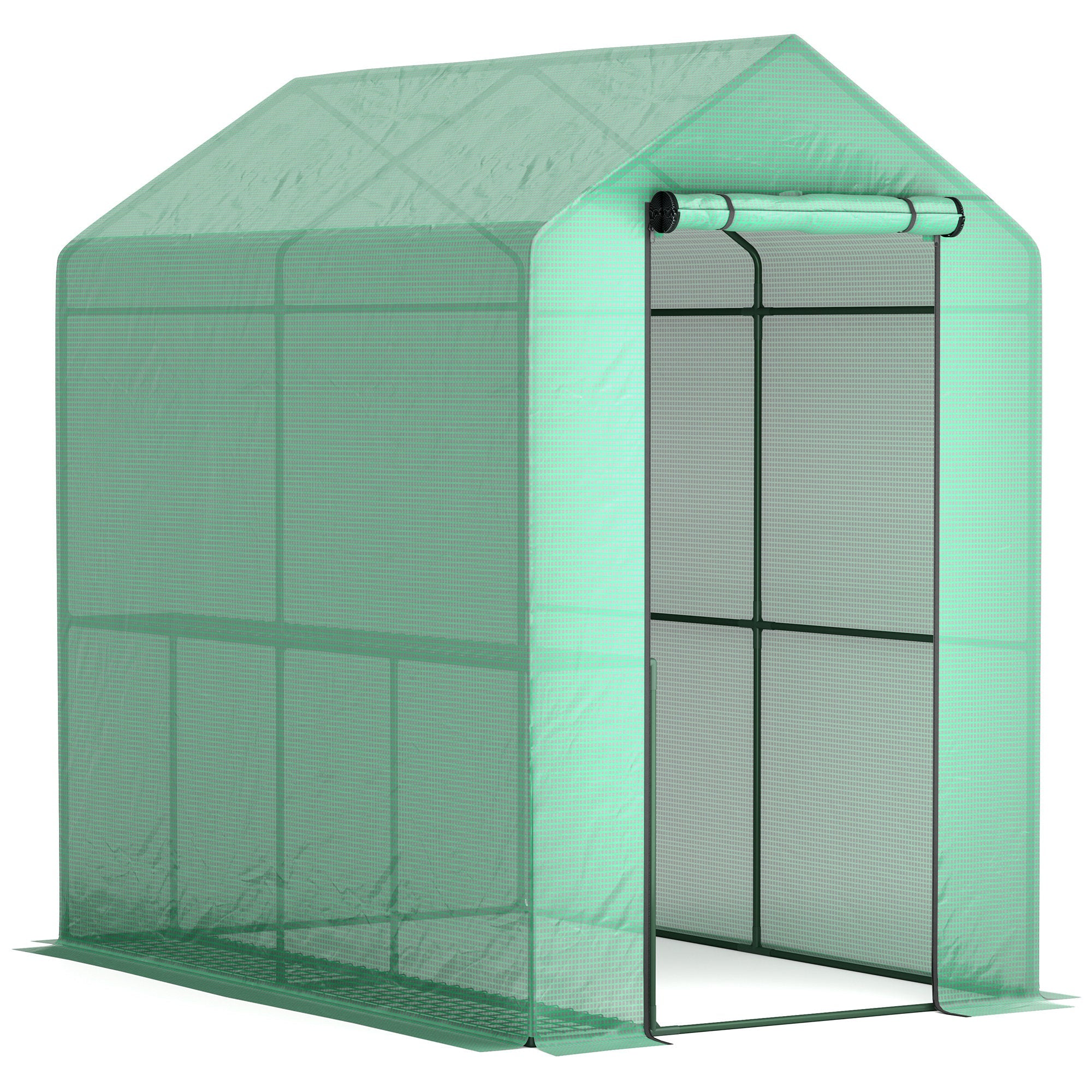 Walk-In Greenhouse 120 x 186cm with Shelves - Green