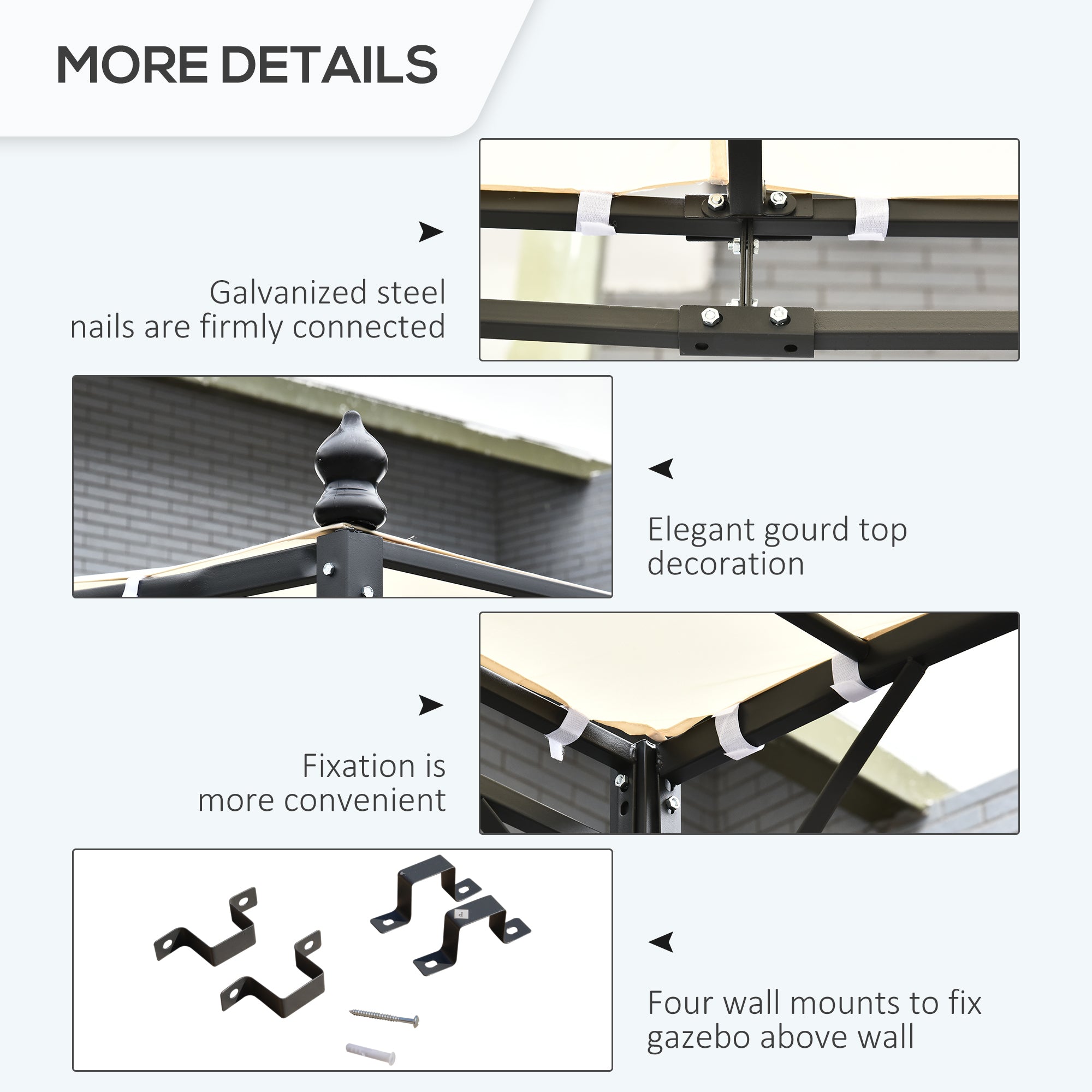 Eight ground stakes are included to pin to the ground and keep the pergola in place.