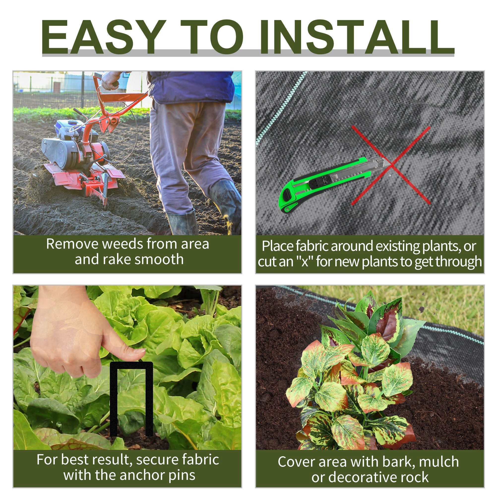 Easy to use: Lightweight and equipped with planting lines, this weed suppressant membrane can be easily cut and laid out for precise, straight-line planting.