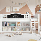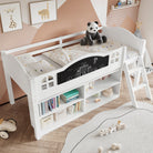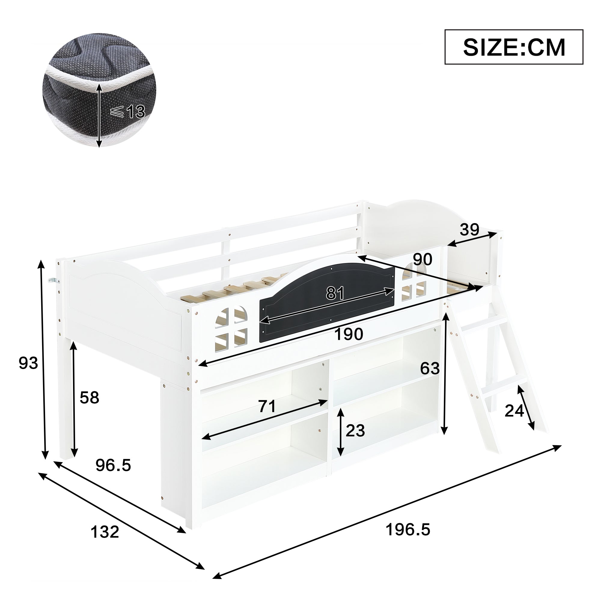 Wooden Storage Bed, 3ft Single with Blackboard and Staircase, White Pine/MDF