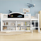 Storage is a breeze with the integrated storage cabinets, offering ample space to tuck away toys, clothes, bedding, or other essentials, keeping the bedroom neat and clutter-free without sacrificing floor space. As a dedicated storage bed, it maximizes usability while maintaining a sleek design, and its white finish adds a fresh touch that complements various decor styles. This bed is not just a place to sleep—it’s a creative corner and a storage solution all in one.